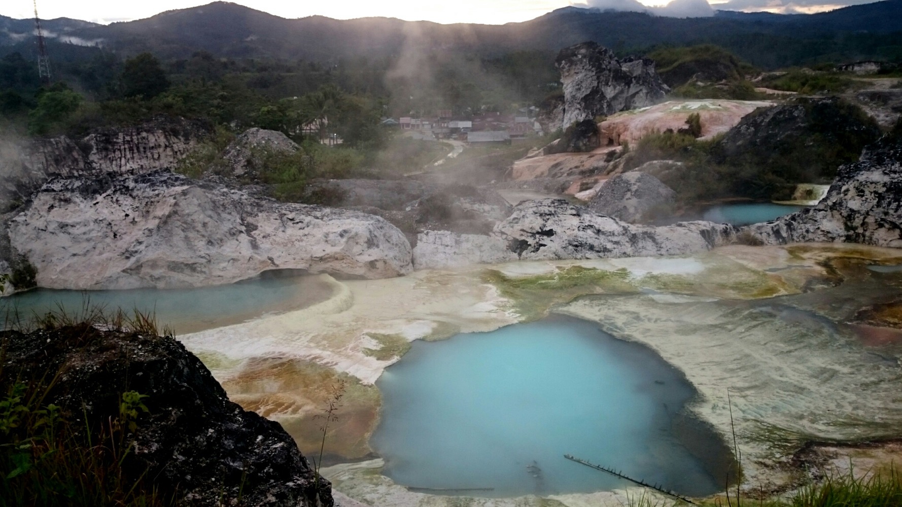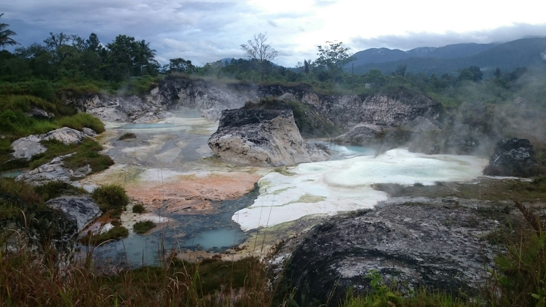 На Суматре в горах много где есть panas air - горячие источники. Едешь такой на байке, чуешь запах сероводорода пошёл - значит где-то рядом можно помыться.