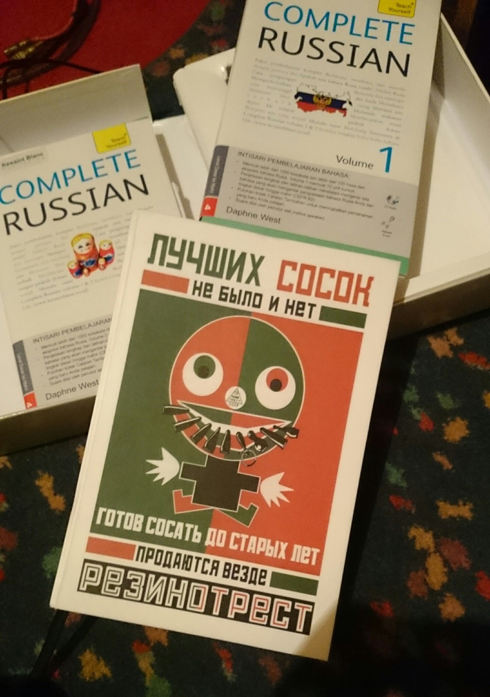 У Винды была попытка увлечения русским языком и кто-то привез ей в подарок тетрадку. Как мне позже сообщили друзья в контакте - никакой пошлости! Это Маяковский, ему все можно: