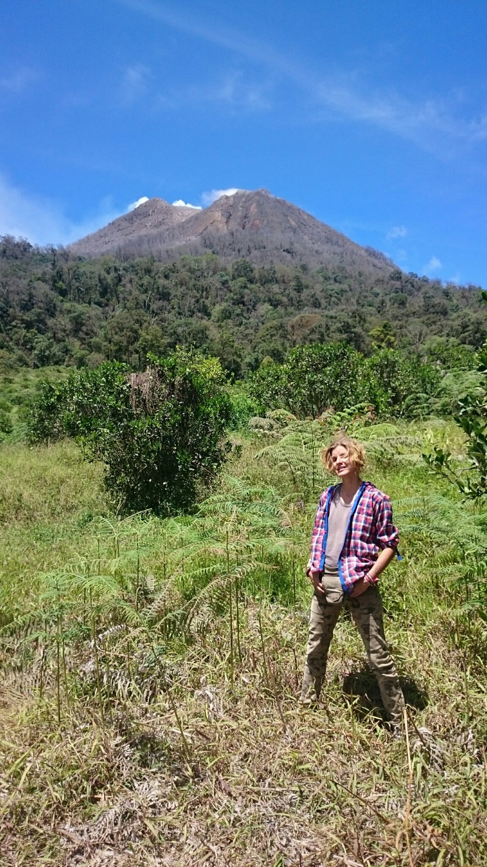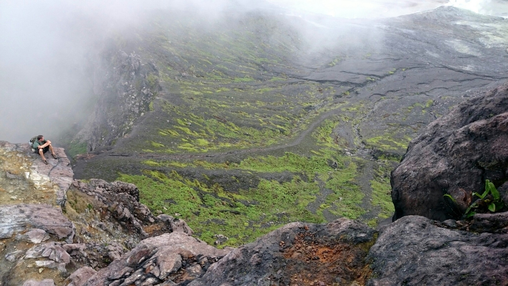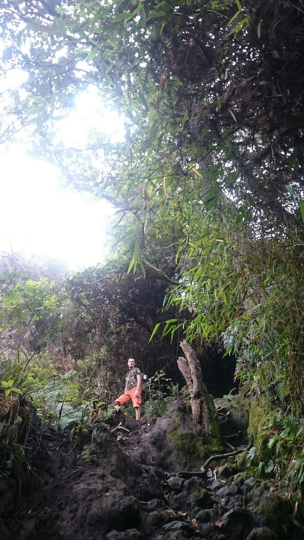 И еще там очень страшно, на Демпо. Просто иррациональный страх какой-то. До этого на Кабе (предыдущем вулкане) мы с Сержем в какой-то момент разошлись, я бродила одна, потерялась там в тумане и видела следы большой кошки на земле. Но страха не было. Ну окей, туман, дороги не видно, ну подожду тут, накройняк переночую - с утра спущусь...