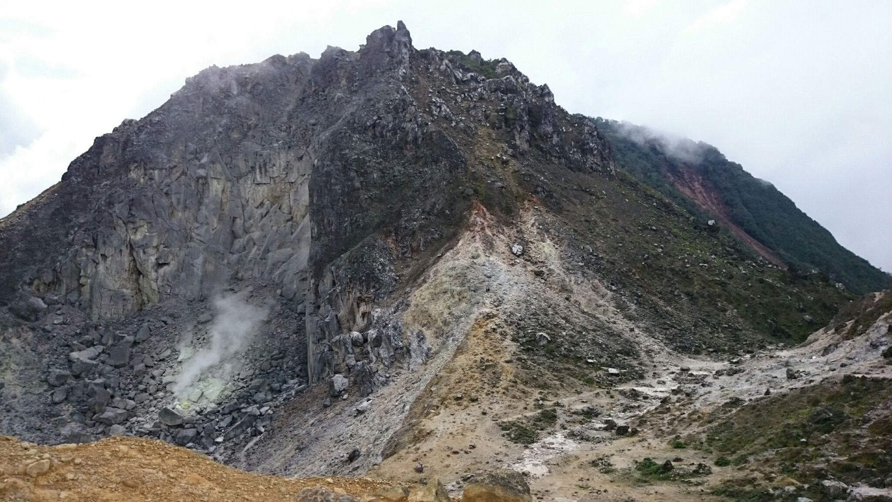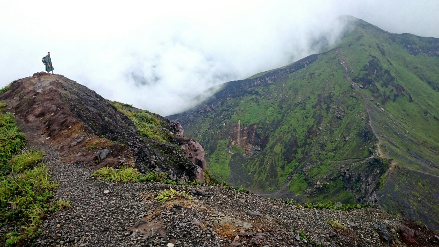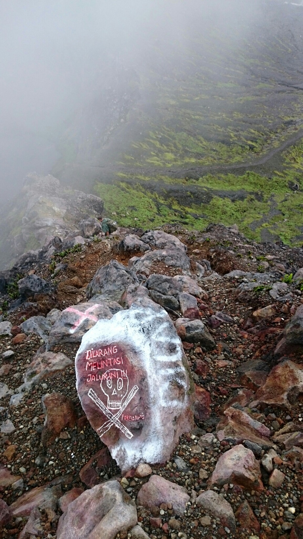 И еще там очень страшно, на Демпо. Просто иррациональный страх какой-то. До этого на Кабе (предыдущем вулкане) мы с Сержем в какой-то момент разошлись, я бродила одна, потерялась там в тумане и видела следы большой кошки на земле. Но страха не было. Ну окей, туман, дороги не видно, ну подожду тут, накройняк переночую - с утра спущусь...