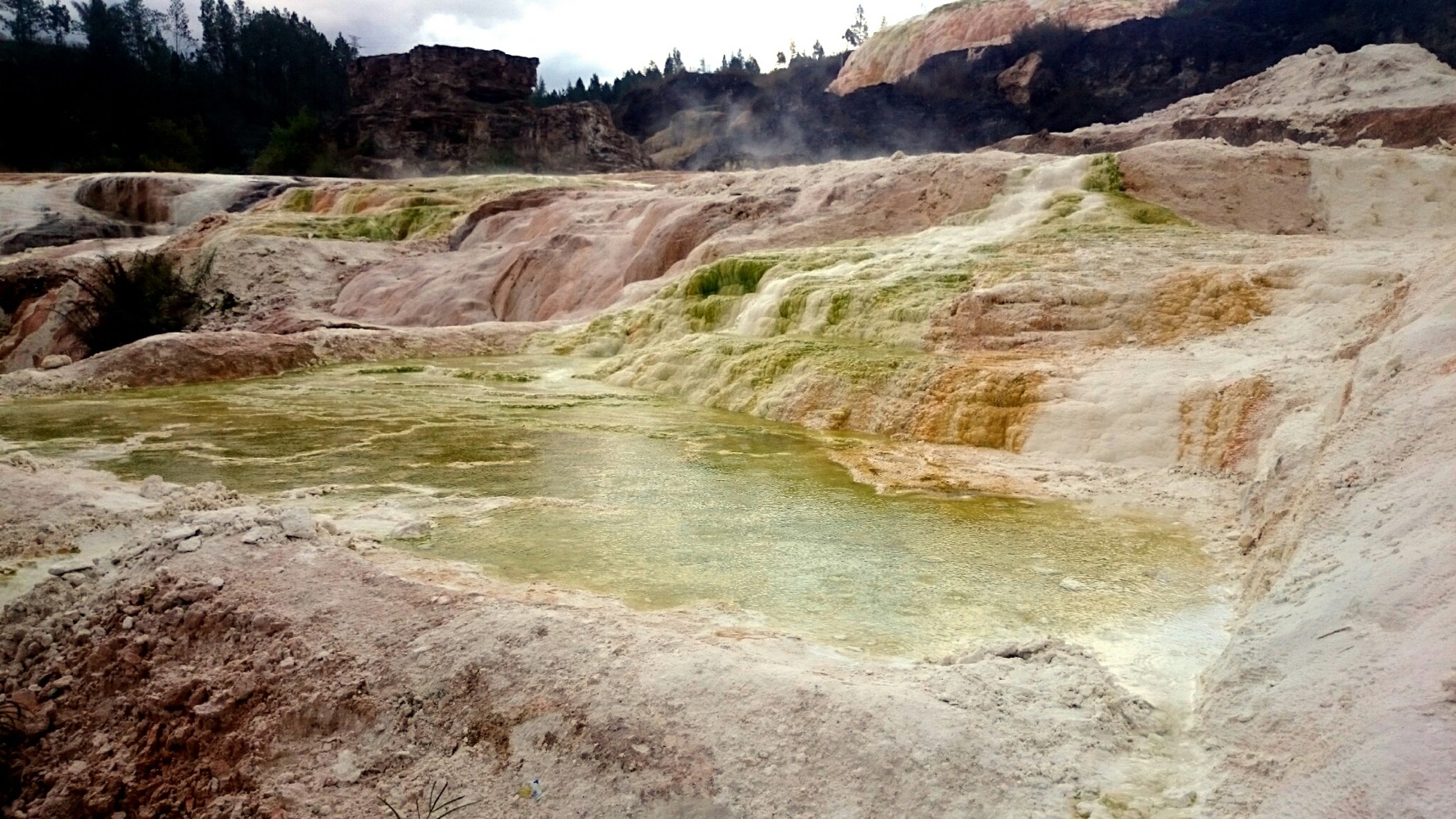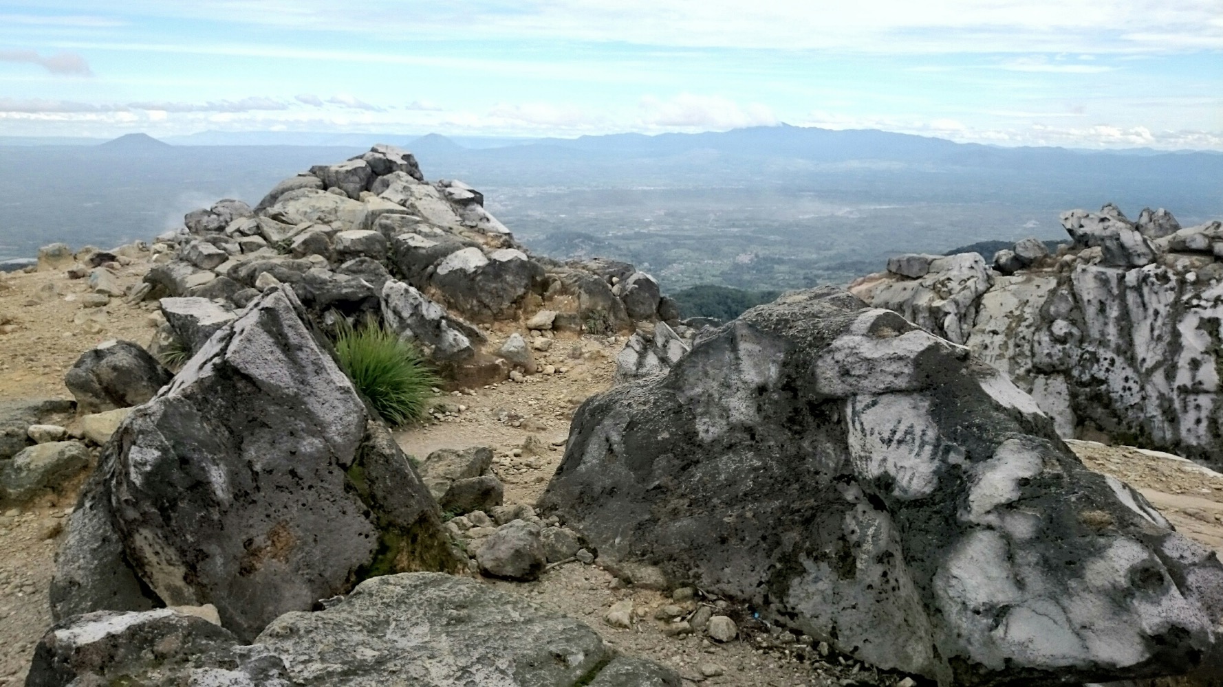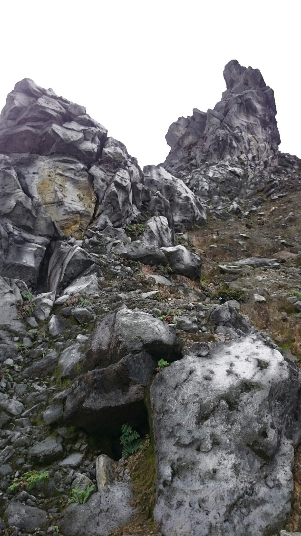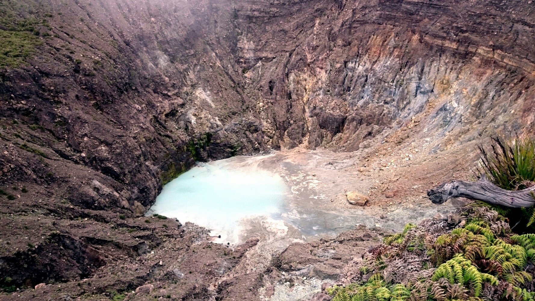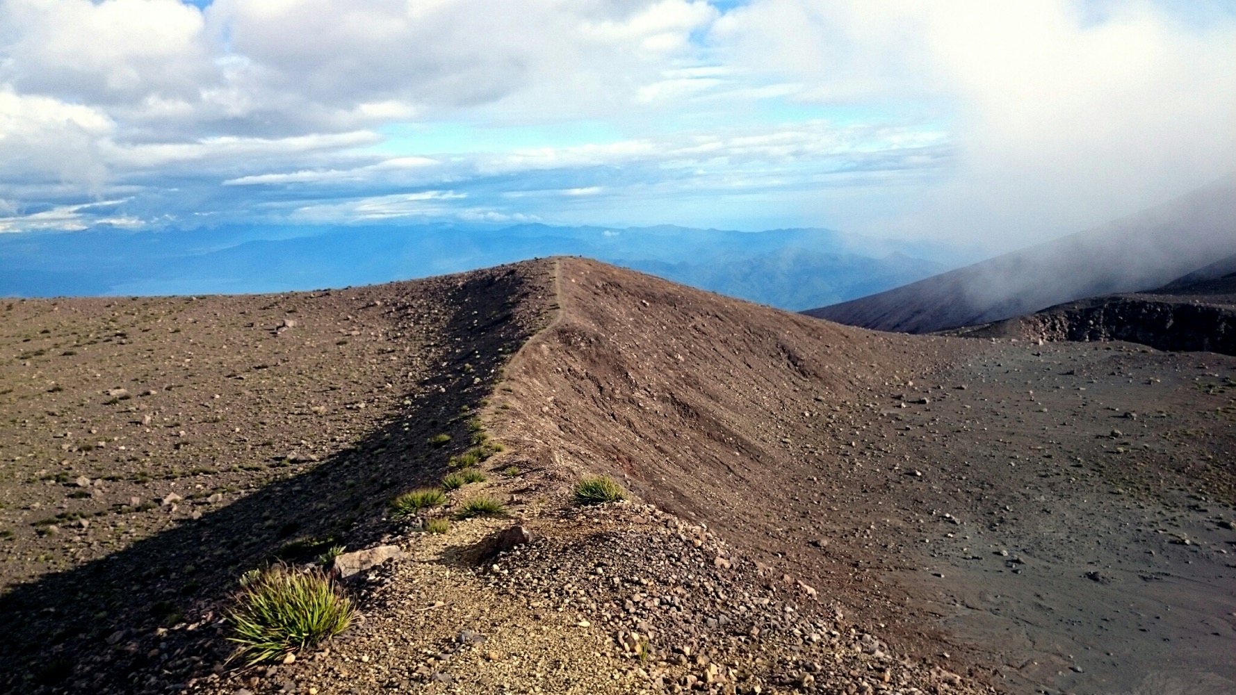 Когда дошли до дальнего кратера все вокруг погрузилось толи в туман, толи в облако, толи и в то и другое. В общем не видно нефига, воняет сероводородом, высота 2700 с соответствующей температурой, и вечерние сумерки... Ах да, конечно же мы не записались на чек-посту, чтобы не платить дань 😊