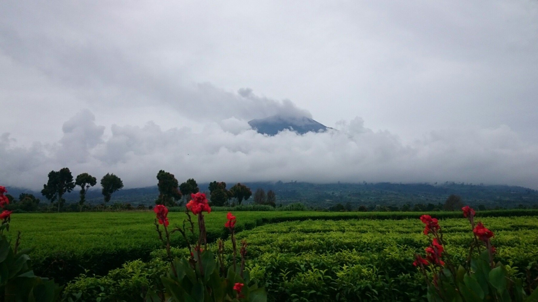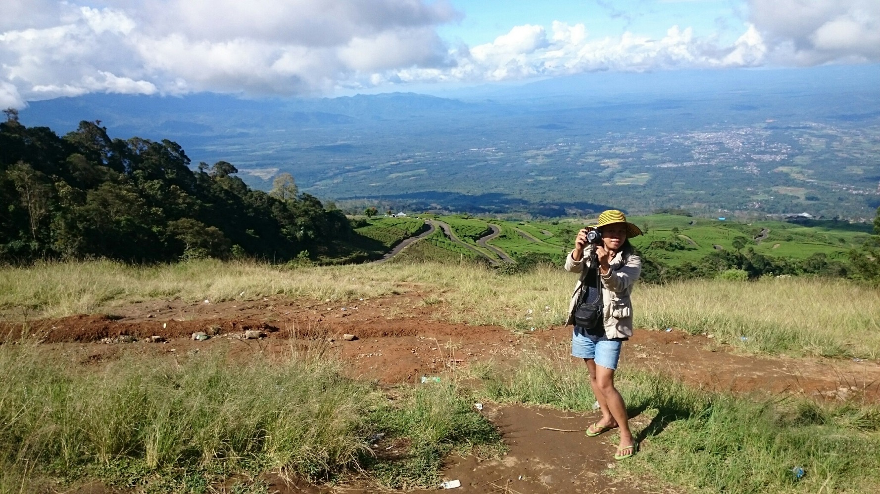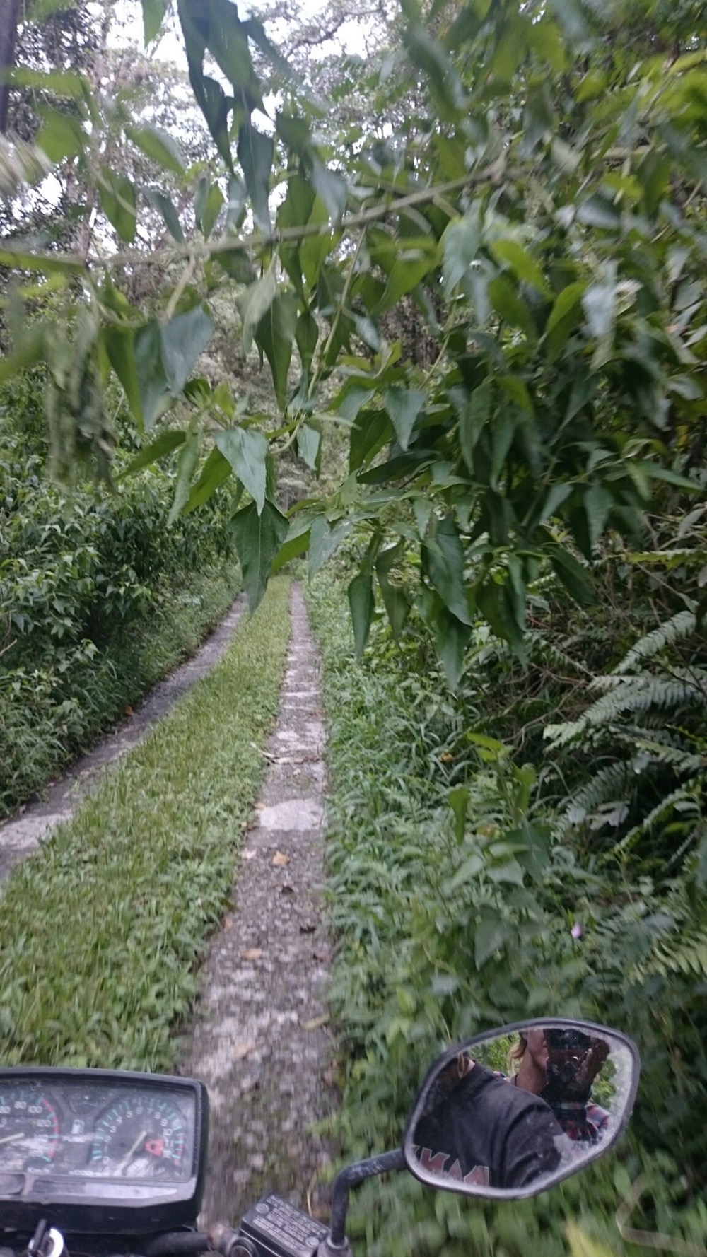 А на третий день мы с Сержем полезли на вершину местного вулкана, Демпо, считающегося одним из самых трудных в восхождении. Сначала долго ехать на моцике через чайные плантации. Хорошая дорога, обалденные виды. А потом - четыре часа изнуряющего ползания вверх. Тропа по сути представляет из себя смесь корней и глины. Постоянный кламбинг.