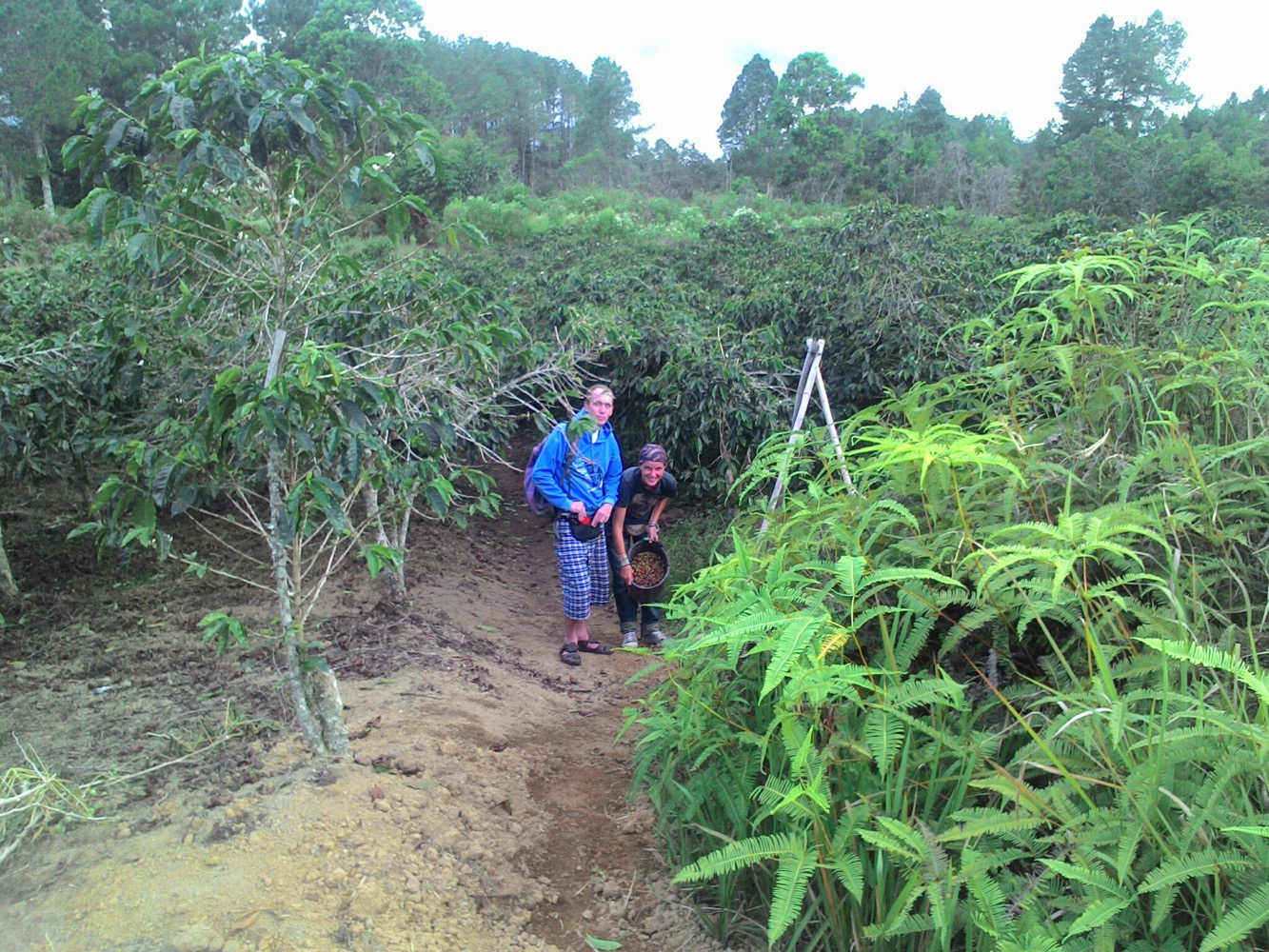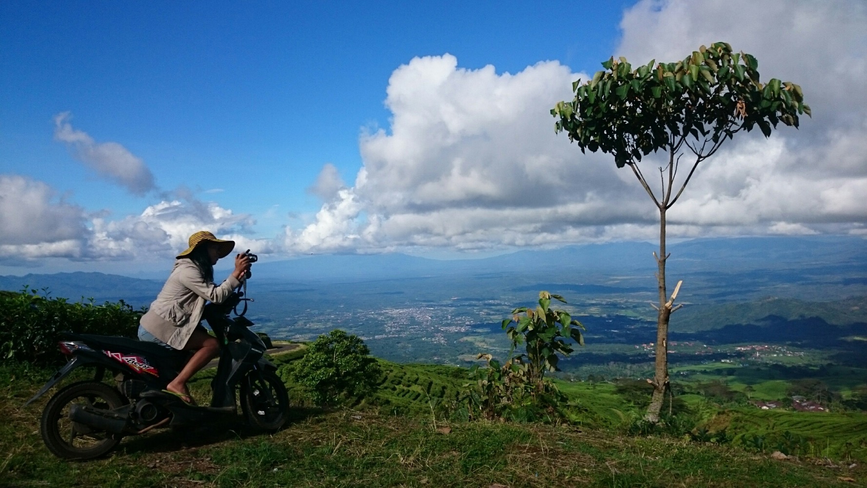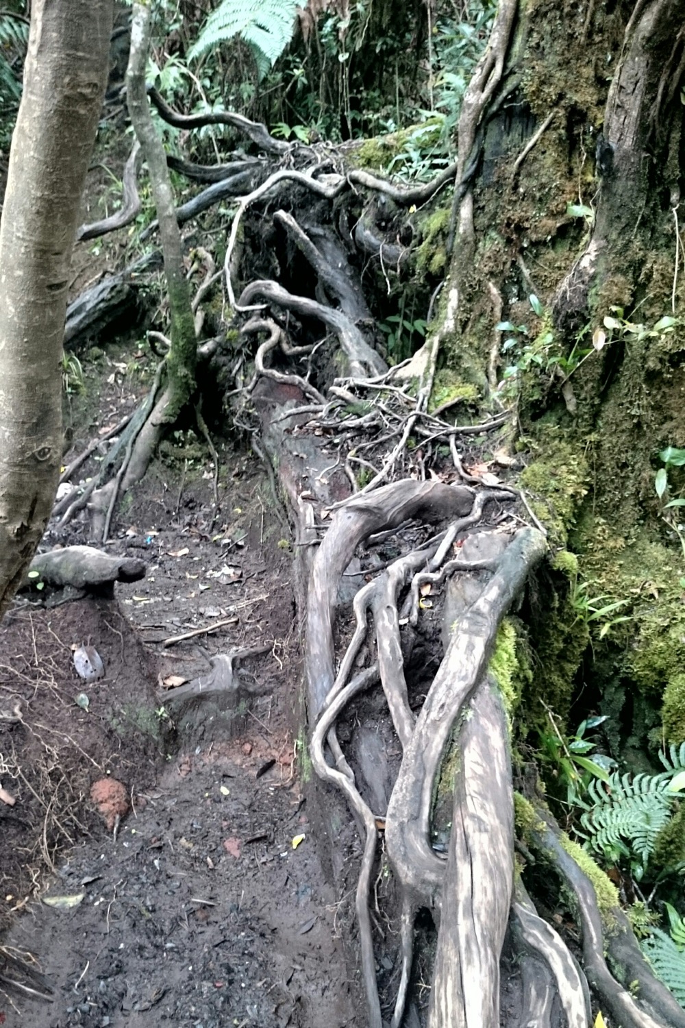 А на третий день мы с Сержем полезли на вершину местного вулкана, Демпо, считающегося одним из самых трудных в восхождении. Сначала долго ехать на моцике через чайные плантации. Хорошая дорога, обалденные виды. А потом - четыре часа изнуряющего ползания вверх. Тропа по сути представляет из себя смесь корней и глины. Постоянный кламбинг.