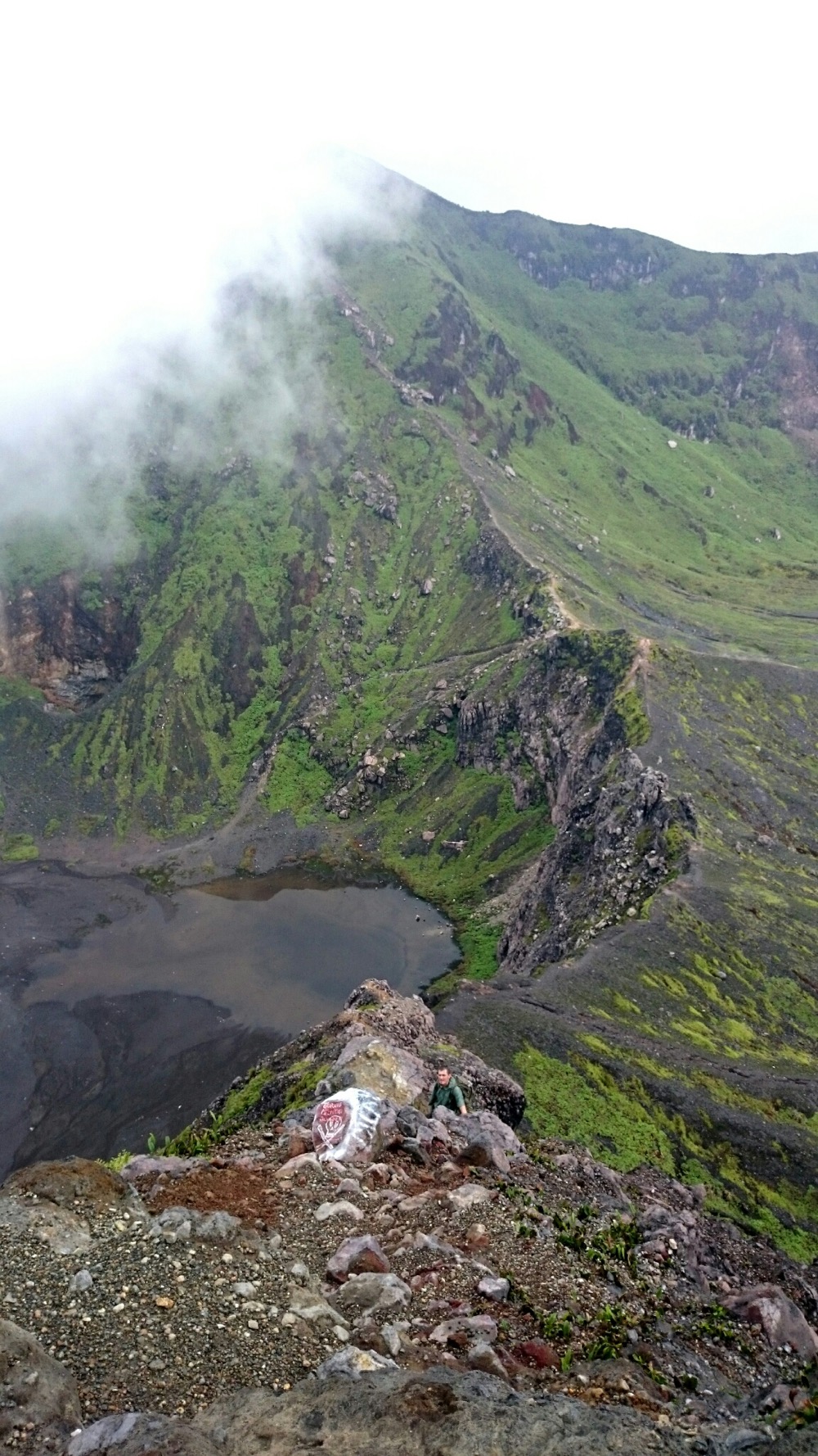 Трек на вершину начинается именно от озера, и, даже была мысль по нему пойти... Но так как Синабунг уже достаточно долго в активном состоянии - нормальные туристы на него не ходят. И джунгли быстренько взяли свое - тропа почти заросла. 😒