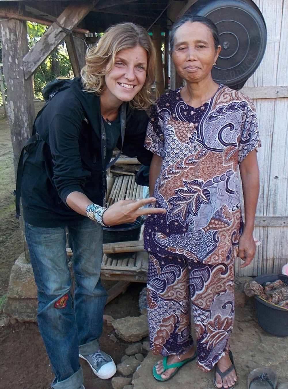 С утра просыпаемся, наш хост Юнита уже приготовила завтрак. Рис, травки всякие тушеные, тарелочка с мясом... Ну мы, бродяги всеядные. Команду "завтрак" воспринимаем однозначно и начинаем мести за обе щеки. Юнита только начала фразу (показывая на тарелочку): "А это наше национальное блюдо..." - а мы уже с аппетитом жуем. "Спасибо, вкусно!" "... собачатина". Ага-ага, очень вкусно! Хе-хе, судя по выражению лица, Юнита все же ожидала другой реакции 😄. Мы же у неё не первые bule. А другие видимо нос воротили... На самом деле - не особо-то и вкусно, достаточно жесткое мясо, без какого-то специфичного запаха.