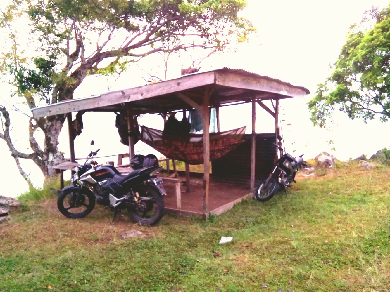 Проехали чек-пост, доехали до куда могли, бросили моцик (не просто на дороге, там еще рядом парочка стояла припаркованных) и покарабкались. Остались ночевать, чтобы поглазеть еще на рассвет.