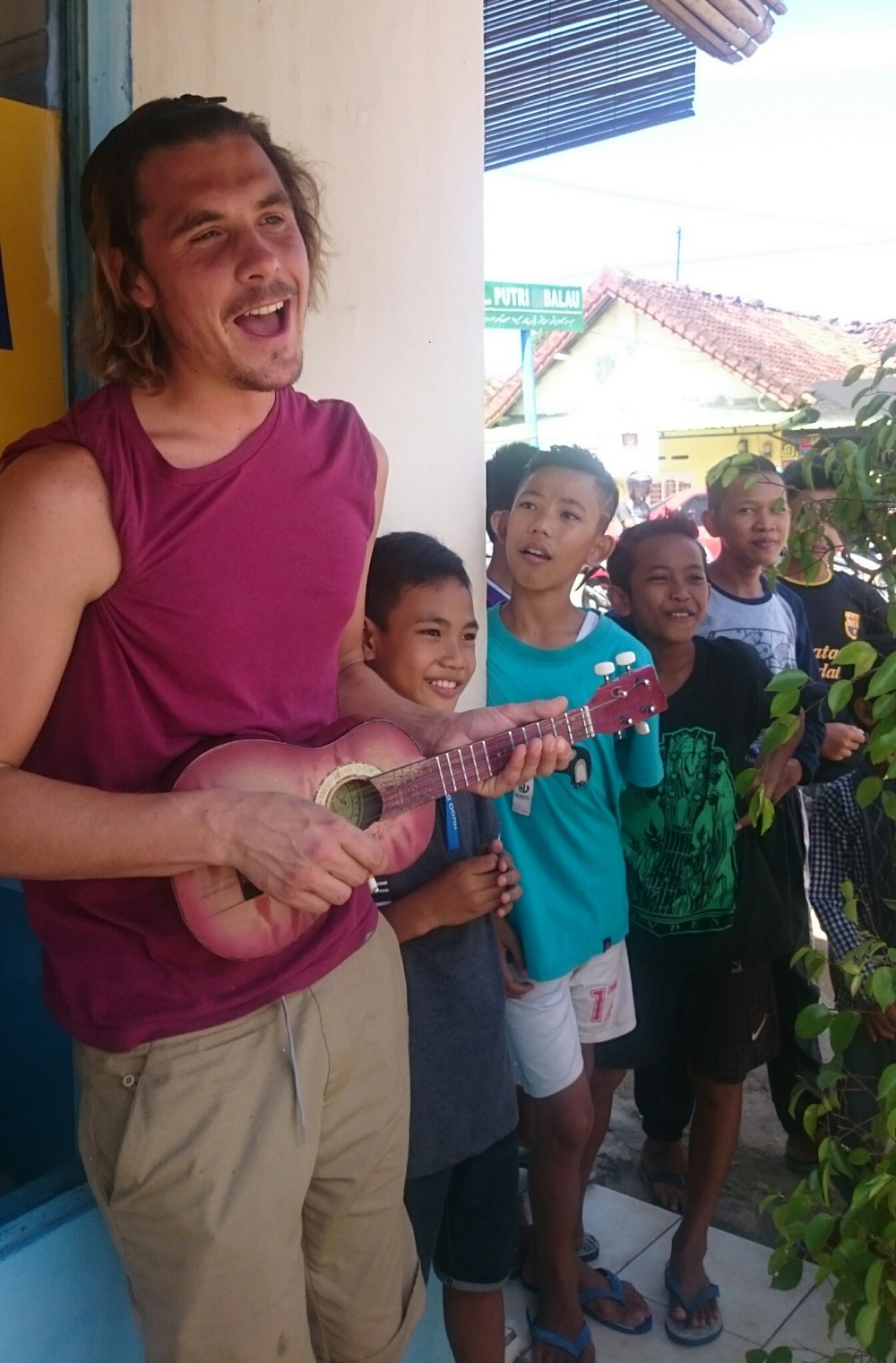 Параллельно с нами ещё один немец приезжал, веселил детишек гитаризмом: