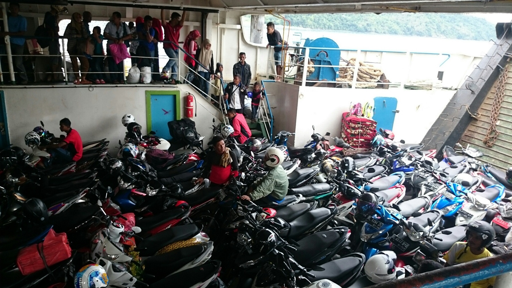Паром на Яву, мотоцикл и два пассажира 45 тыс индорупий (3,5$). Виды бесплатно 😊