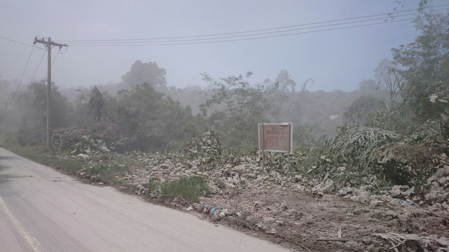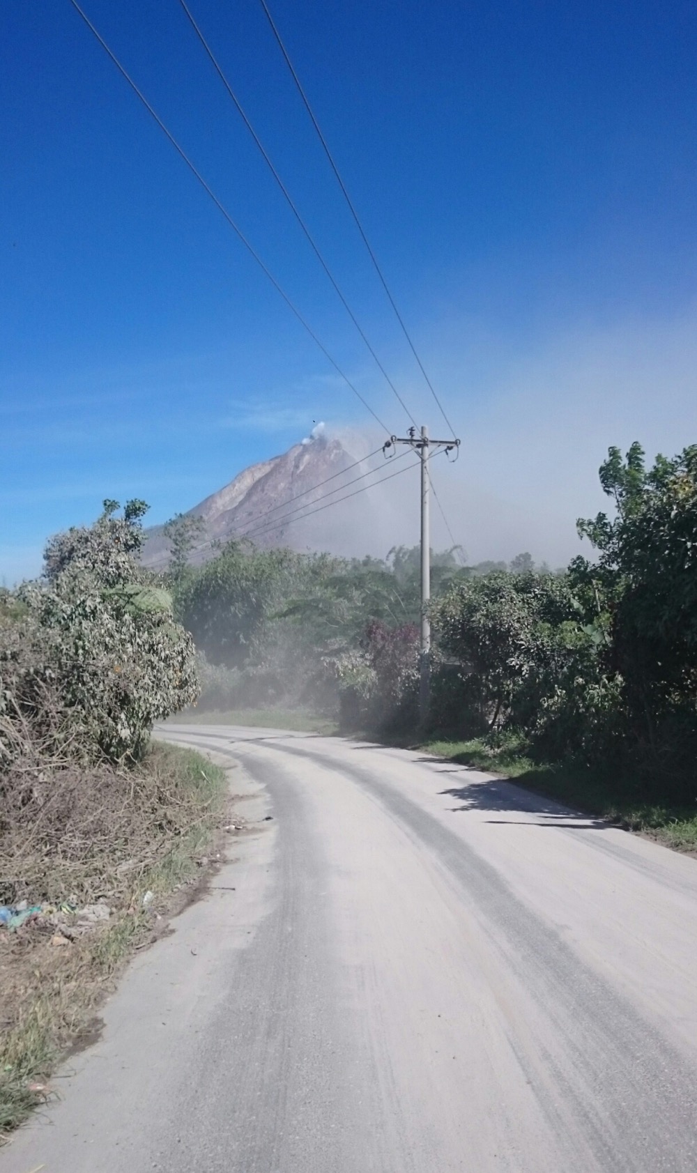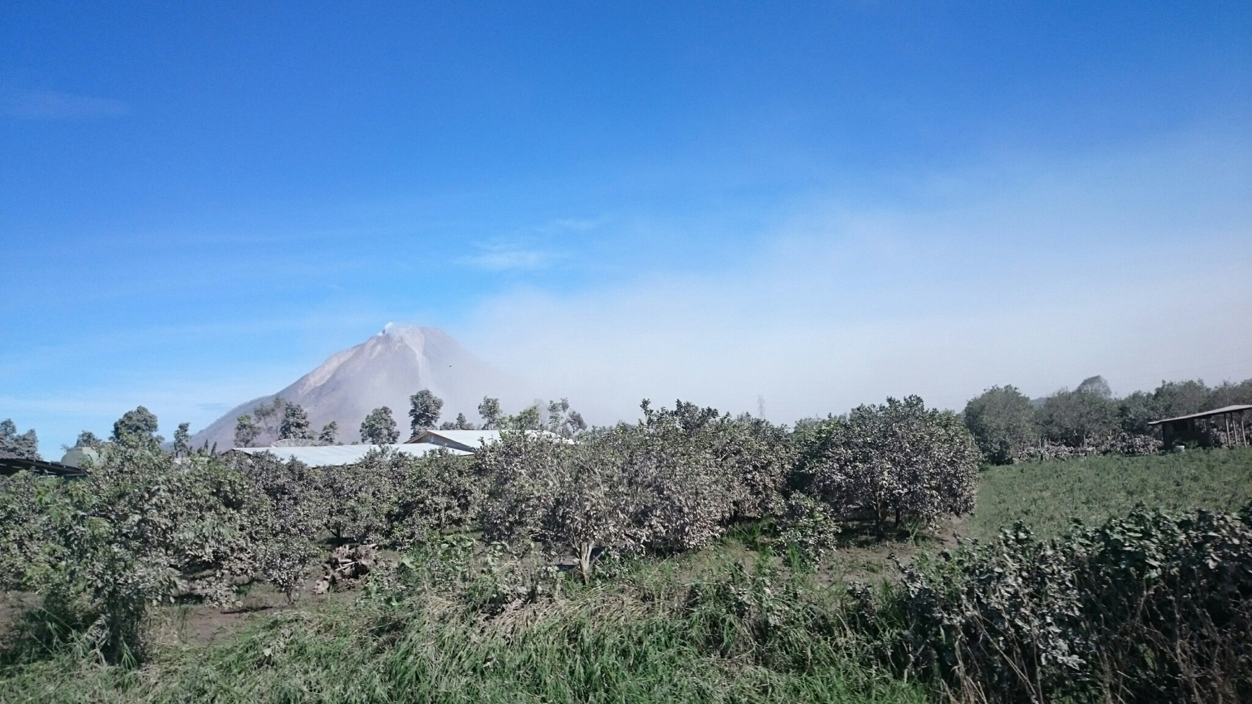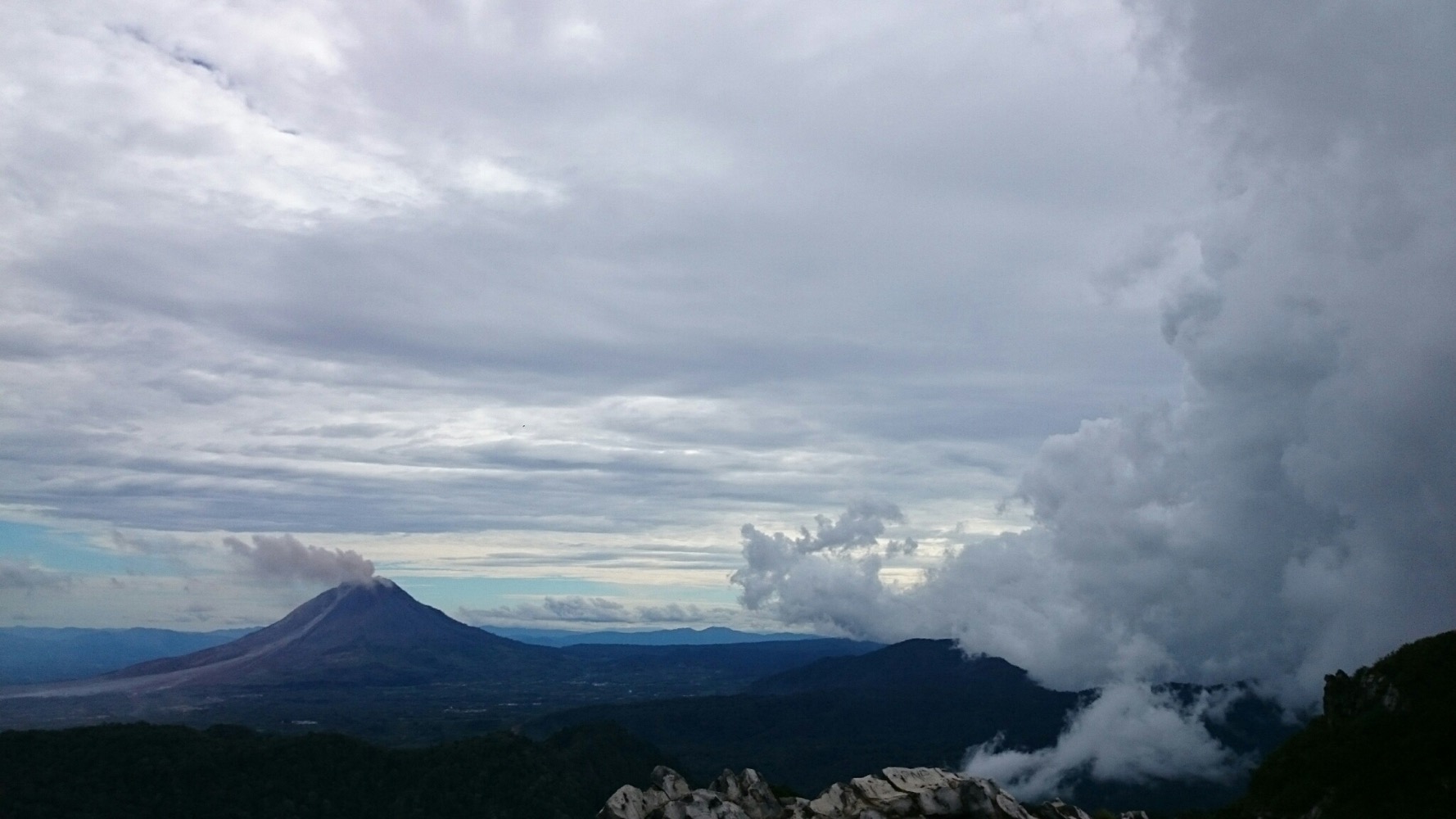 Вулкан Синабунг, громадина высотой 2500 метров плюется пеплом.