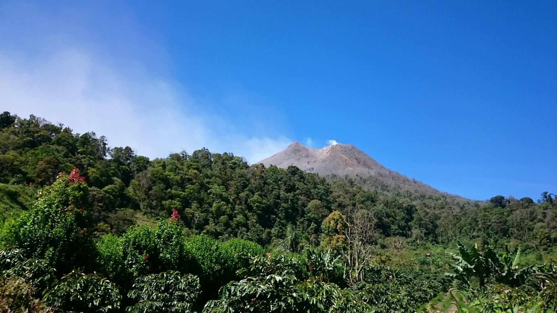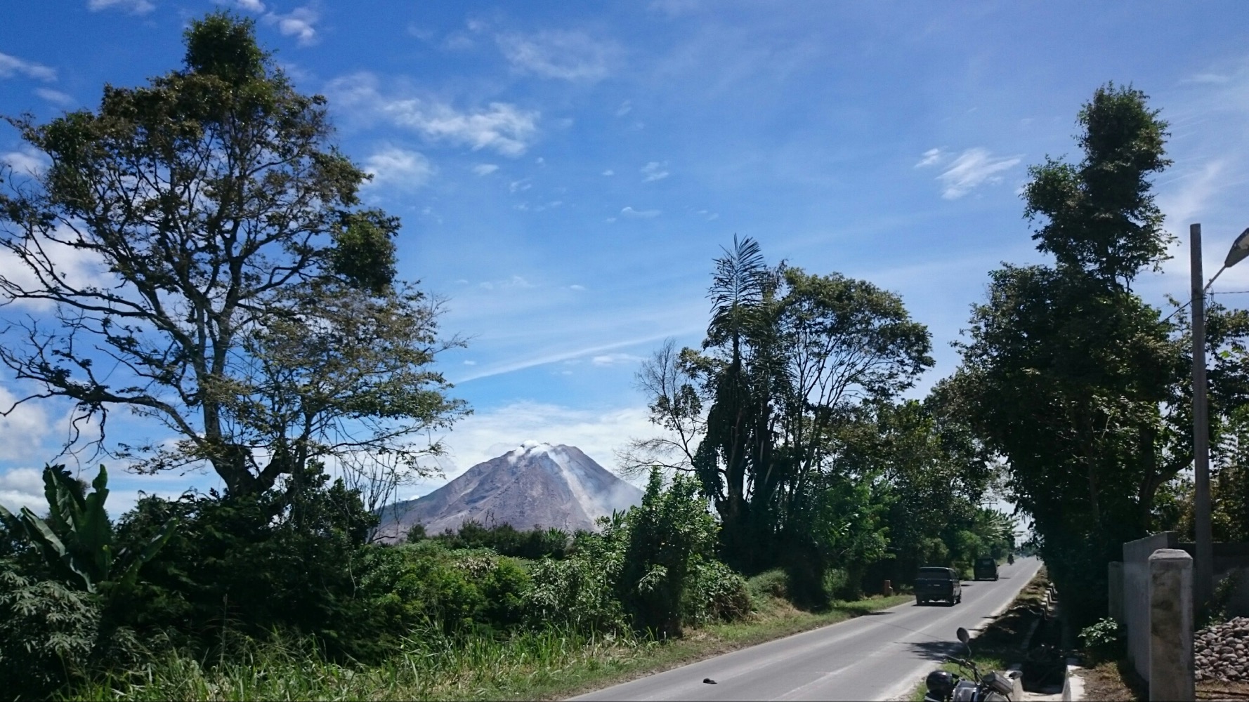 Увы, с самым высоким вулканом Индонезии не сложилось... Он вяло, но все же извергался. Проехали мимо. И вообще всю провинцию Джамби just passed by. В следующий раз. Красиво, холодно, дождливо, самые плохие дорогие из всех суматранских.