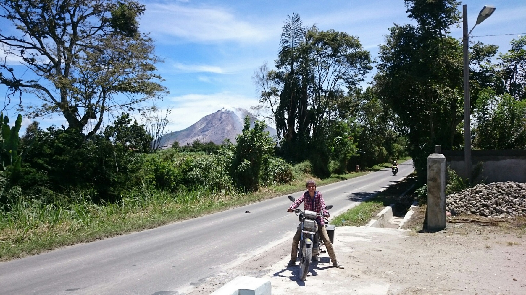 Рядом с Синабунгом есть ещё другой вулкан - Сибаяк. Он не извергался настолько давно, что к нему проложили дорогу. Тоже давно. Возможно она даже пережила несколько извержений, судя по качеству. Но тем не менее лучше плохо ехать, чем хорошо идти 😄 Зато с него хорошо было видно извергающийся Синабунг. Да и на пиках кратера наделали много красивых фотографий.