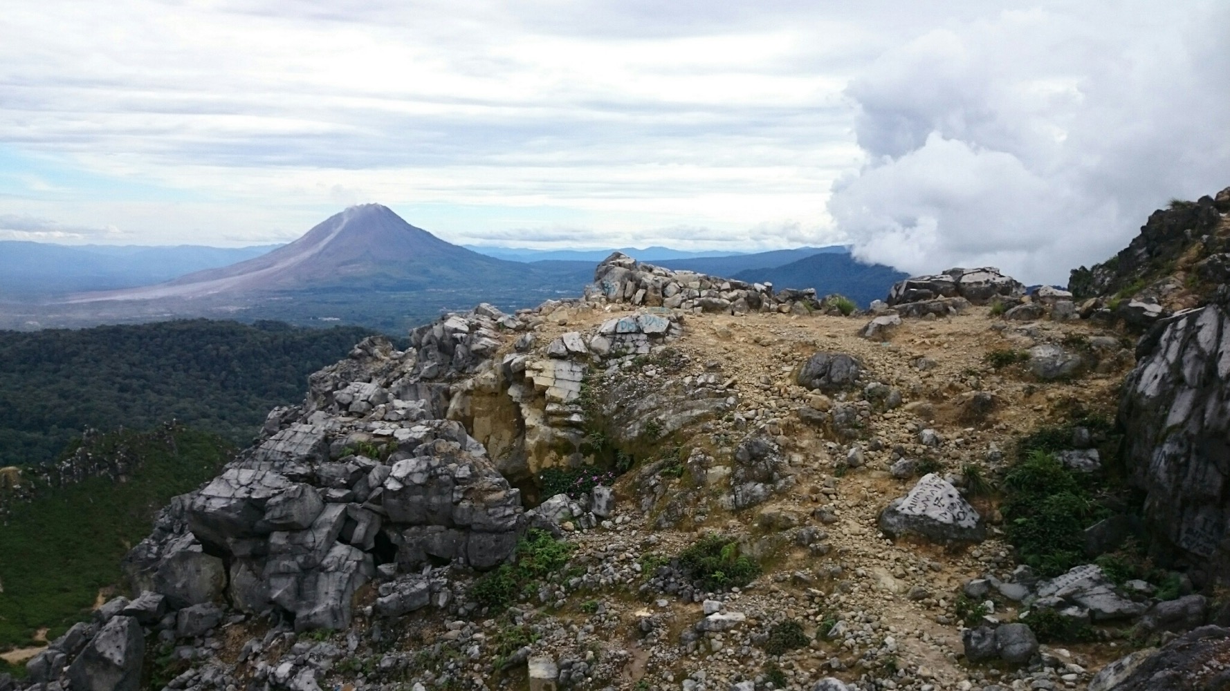 извергающийся Синабунг. Да и на пиках кратера наделали много красивых