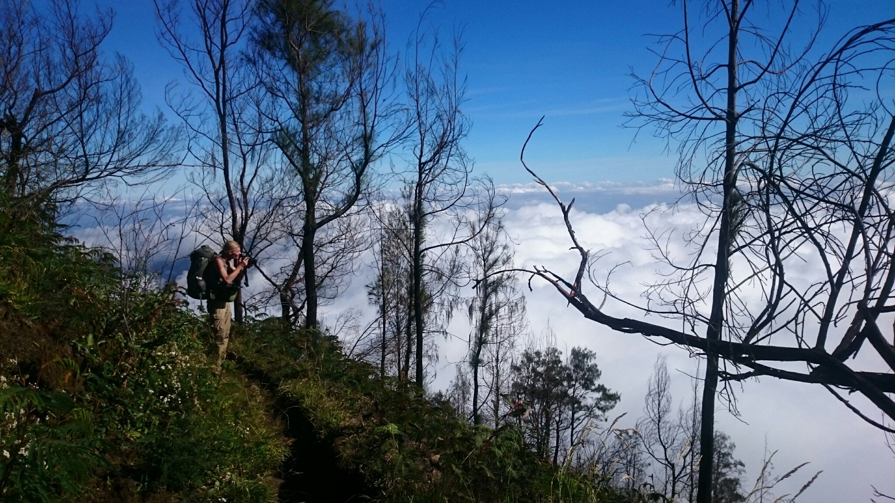Cemoro Kandang. 12 км до вершины. Тропа относительно пологая, с кислым водопадом на входе и очень красивыми видами со склона, особенно, когда уже поднялся выше облаков.