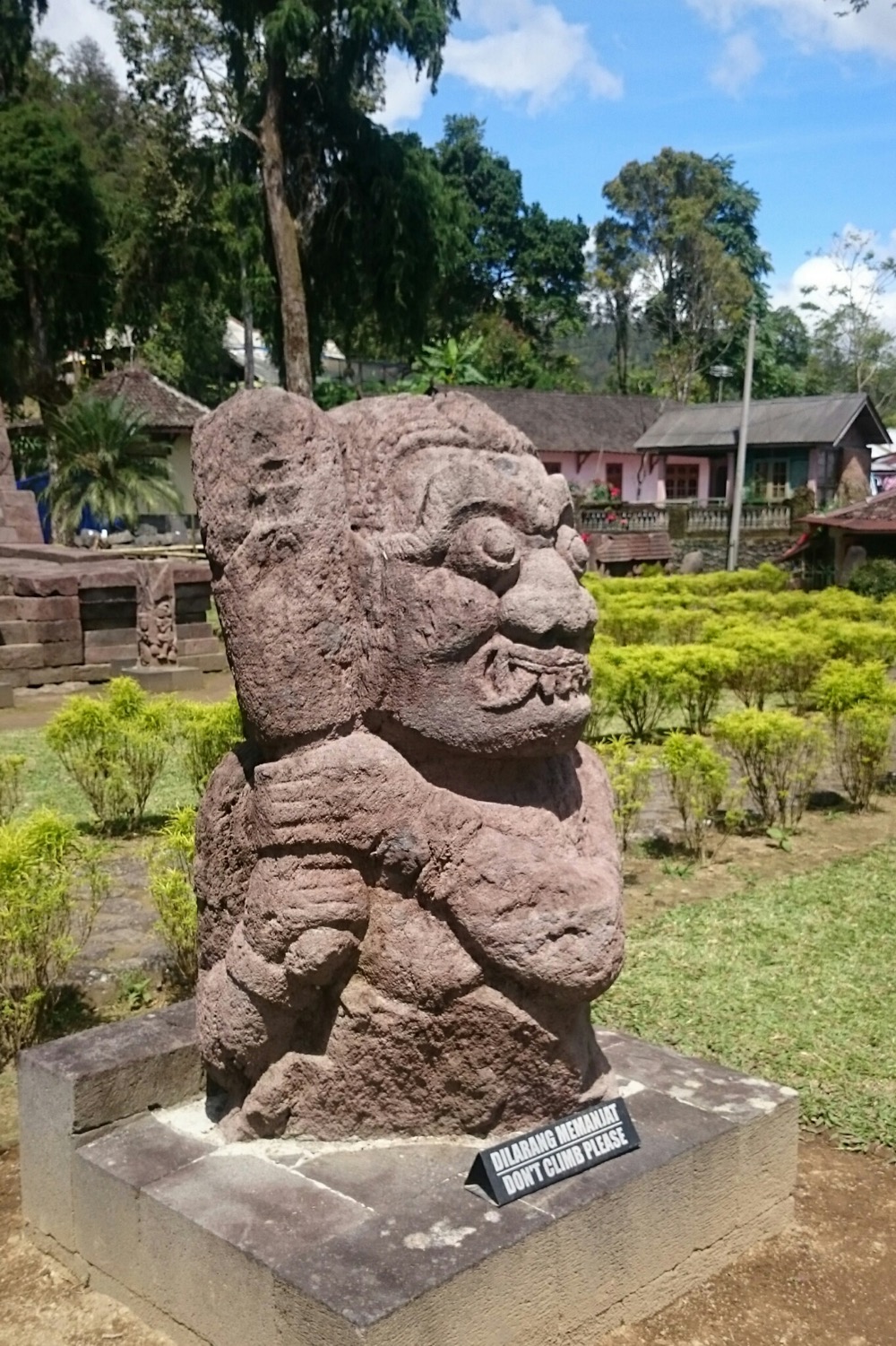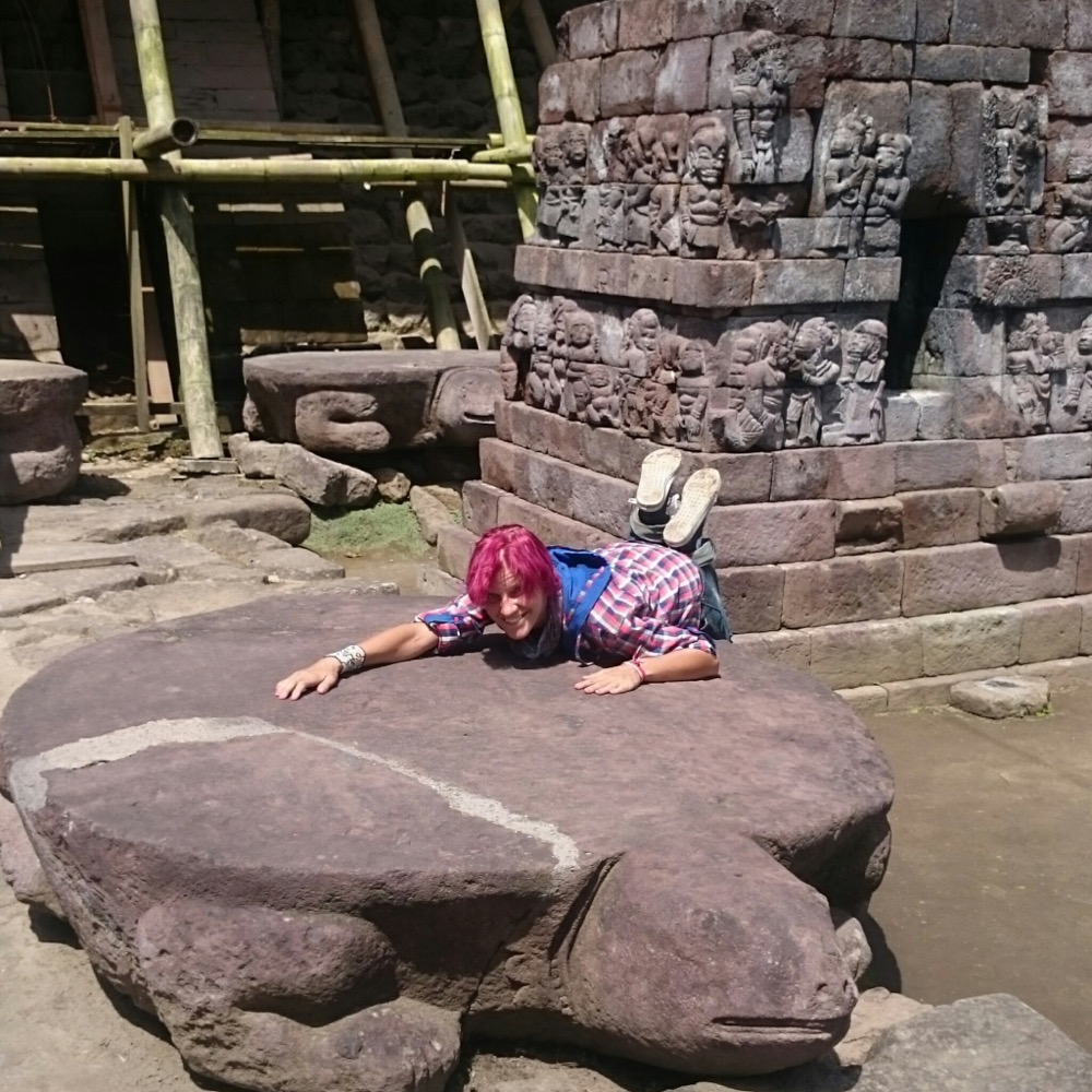 А вот в Candi Sukuh атмосферы совсем нет. Во-первых нам отказались продать билеты по локал-прайсу. Это при том, что я была с мальчиком, который свободно говорит на бахасе, три года живет в Индонезии. Во-вторых там была реставрация, поэтому смотреть было особо и не на что. Разве что сделать селфи с богами:
