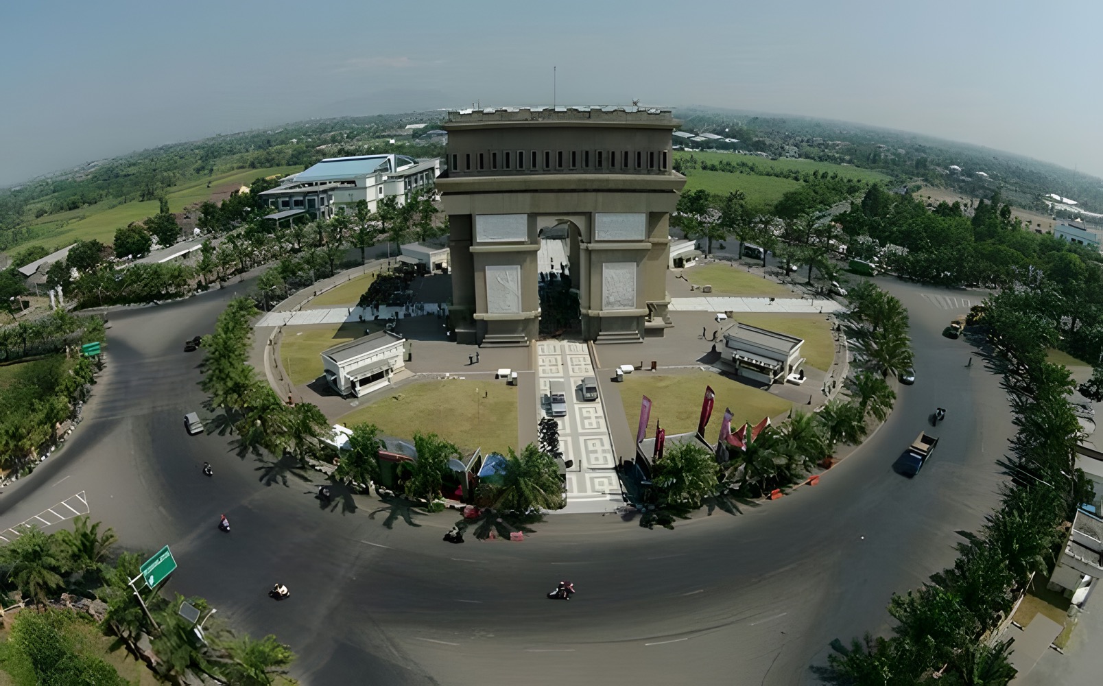 2016 Aug 23 See all postsВолею судьбы (а точнее моих хитрых делишек) оказались мы в городе Кедири (на востоке Явы). Город как город, ничего особенного. Trip Advisor, например, на первое место по привлекательности ставит Monumen Simpanglima Gumul. Я, кстати, тоже. Только вот, по разным причинам. Трип-адвизор считает, что можно сделать красивые фотографии на фоне этого монумента... А мне монумент запомнился своим расположением. Стоит он в центре кольцевой развязки, пятилучевой. Каждый луч разделен еще на "туда-обратно". То есть десять дорожек. Выглядит это все вот так: