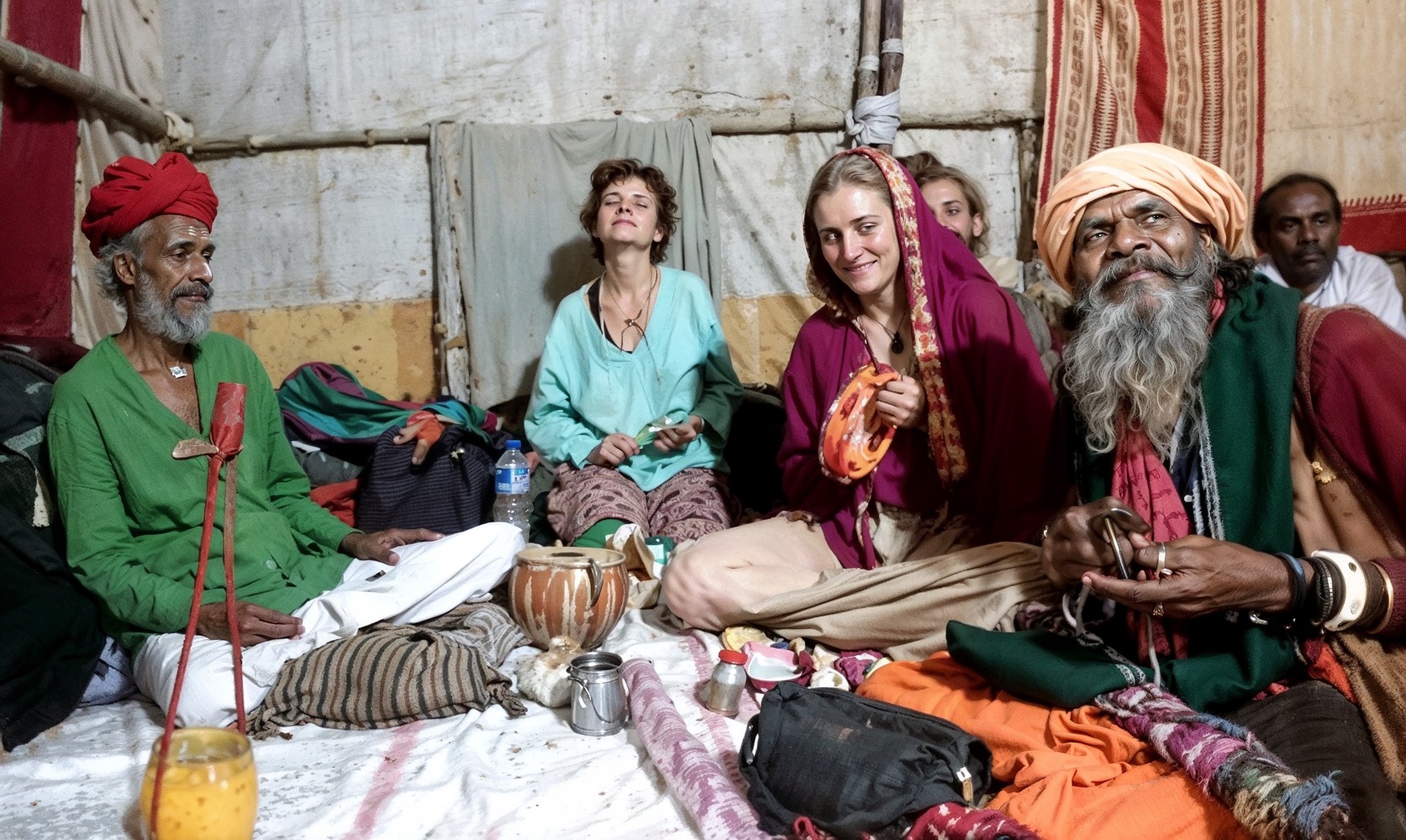 И за территорию фестиваля просто так не уйти, надо обратно Гангу переплывать, потому что музыко-едально-тусильные палатки поставлены везде. Они упираются в дворы и дома местных жителей, которые эти дома и дворы позапирали на все засовы, только что колья не выставили, чтобы все эти триста тысяч фестивателей не зассали всё вокруг (ой, а индусы это умеют).
