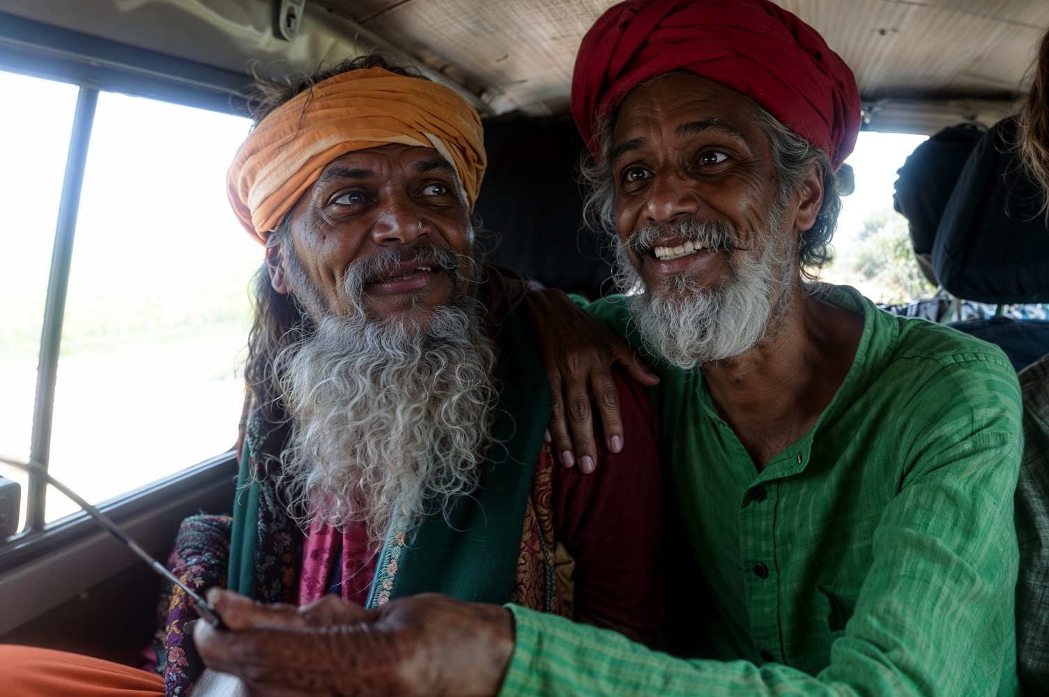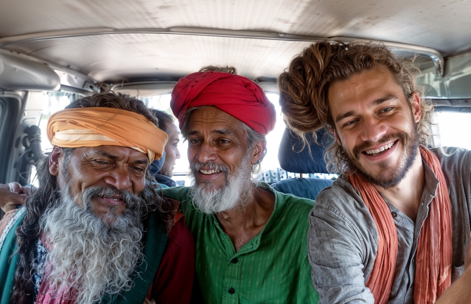 выдвинулись из ашрама на фест. Ехали по-индийски: пели, играли, заезжали