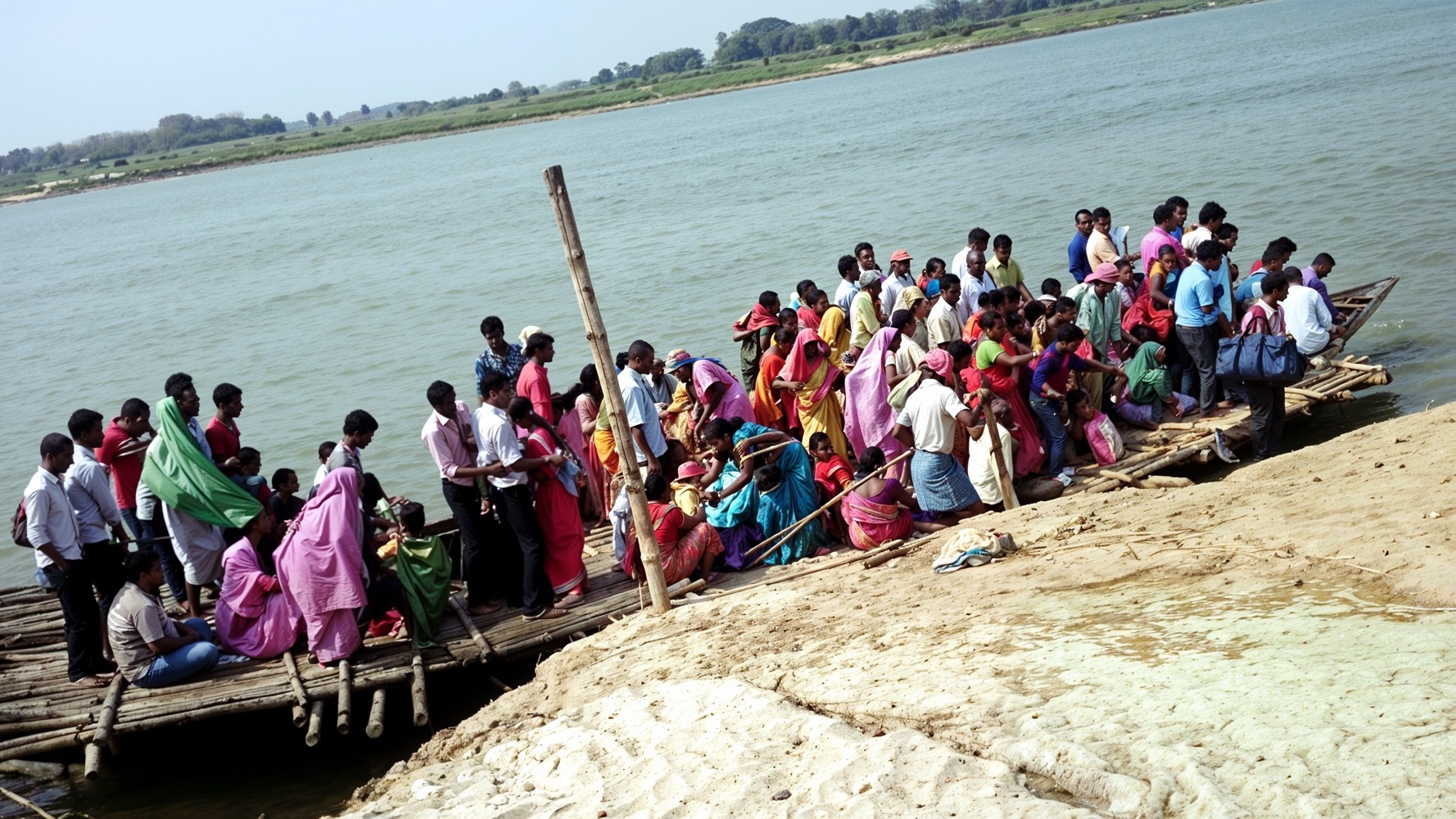 Фестиваль на другом берегу Ганги, грузимся на паром: