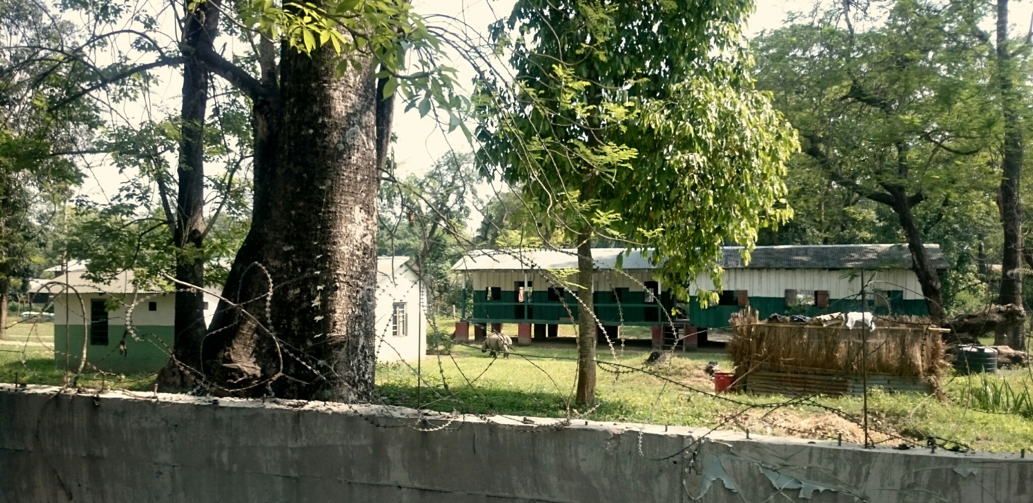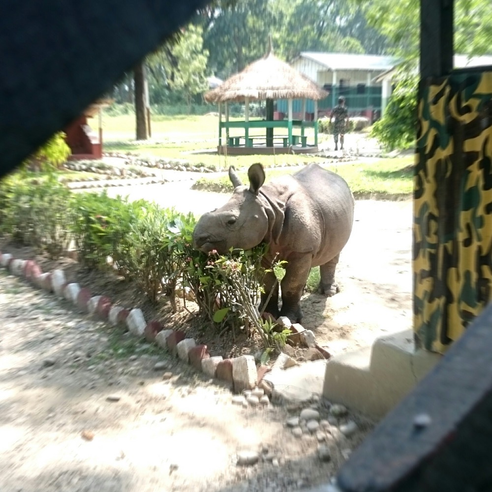 - Интересно, а люди в части вообще знают, что у них носорог? Оказалось знают, мальчик на воротах уставшим голосом просил: "no photo, please". Но сколько раз в день глазастые туристы замечают rhino за колючей проволокой? За нами остановилась ещё парочка индусов, тоже решив подивиться на детёныша. В итоге, солдатик таки догадался устранить саму причину столь пристального внимания и хворостиной по попе погнал носорожика подальше от ворот, за казармы.