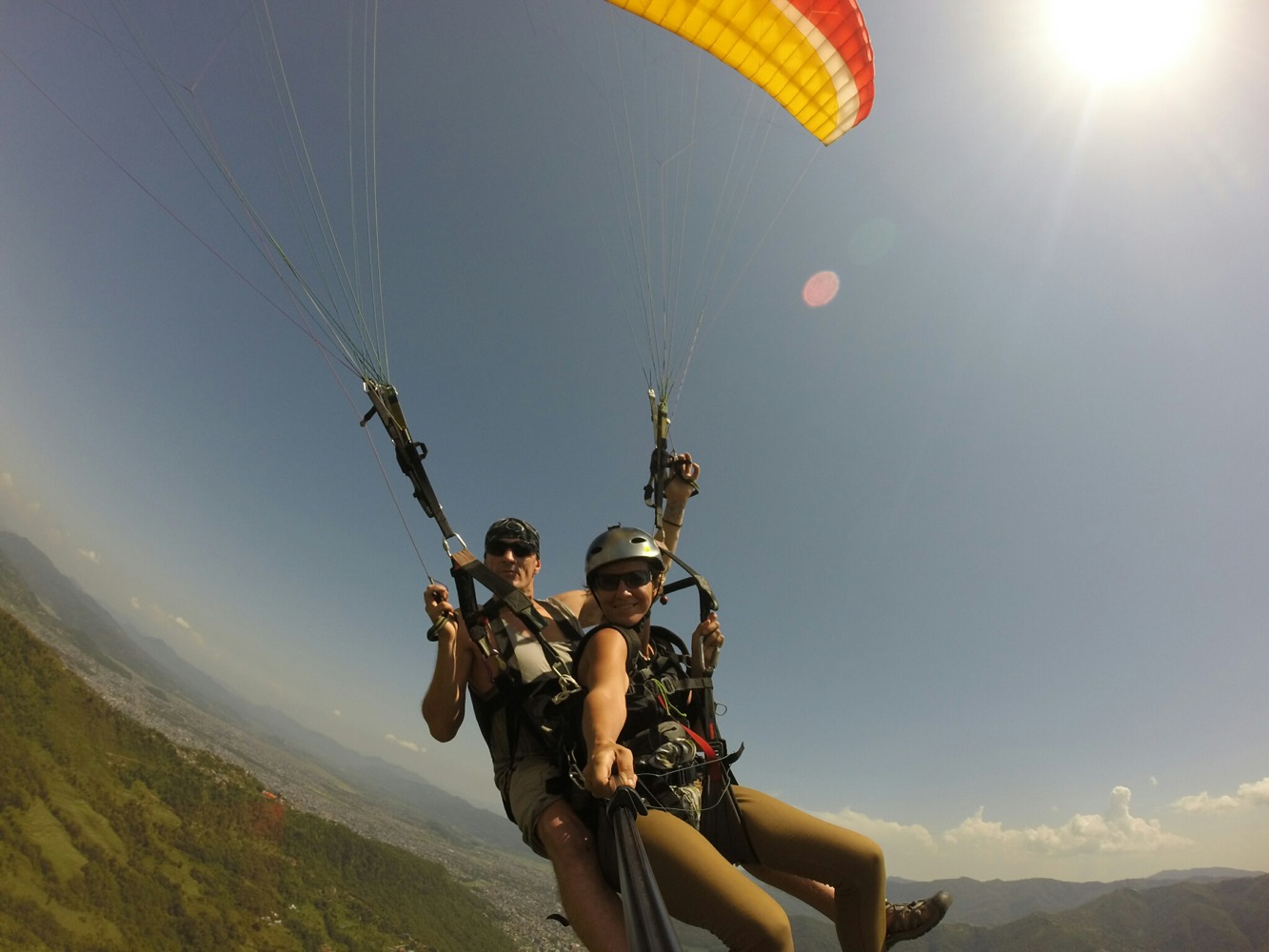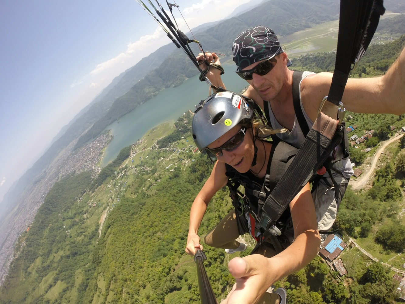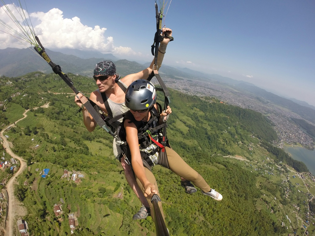 Расскажу сначала легальную схему, как делают все нормальные люди: Приходят в любой из 60 офисов компаний на лейк-сайде и говорят: "I want to fly". Им говорят 12000 непальских рупий (на текущий момент, вторая половина мая 2017 года) вынь да положь. Дальше их сажают в джип, везут через всю Покхару на гору Саранкот, на одну из трех стартовых параглайдерских площадок. На их пути несколько чек-постов, которые проверяют документы пилотов, количество летящих и тоже собирают дань в размере нескольких тысяч. Всё, заехали на гору, пассажира пристегнули, сказали "бежать". Если не бежит (ножки подкосились, лететь передумал, кричит "мамочка") - есть специальные мальчики-хелперы, которые за 100 рупий тянут несчастного оплатившего по старту.