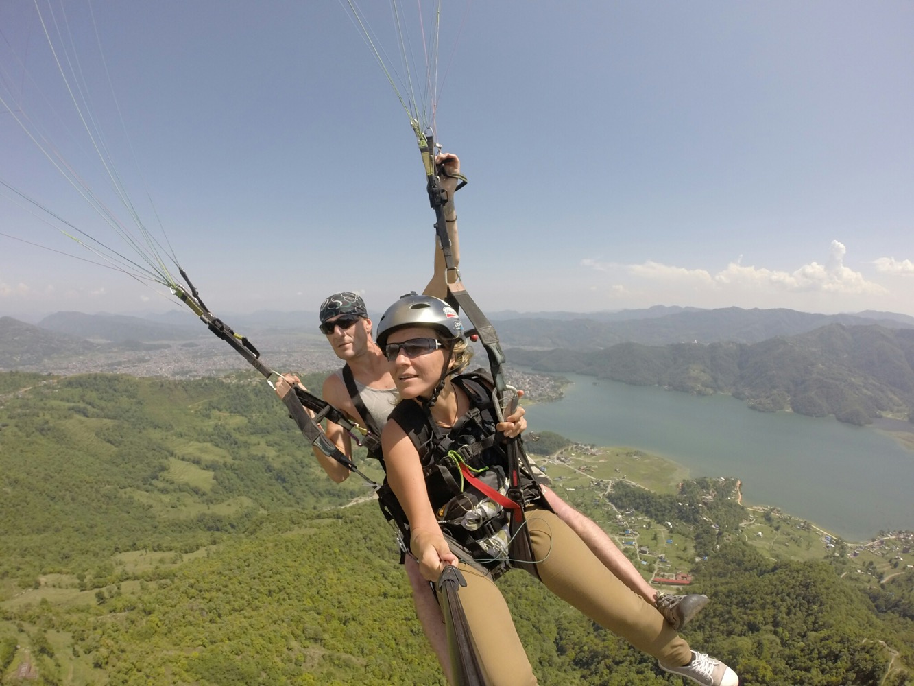 через всю Покхару на гору Саранкот, на одну из трех стартовых