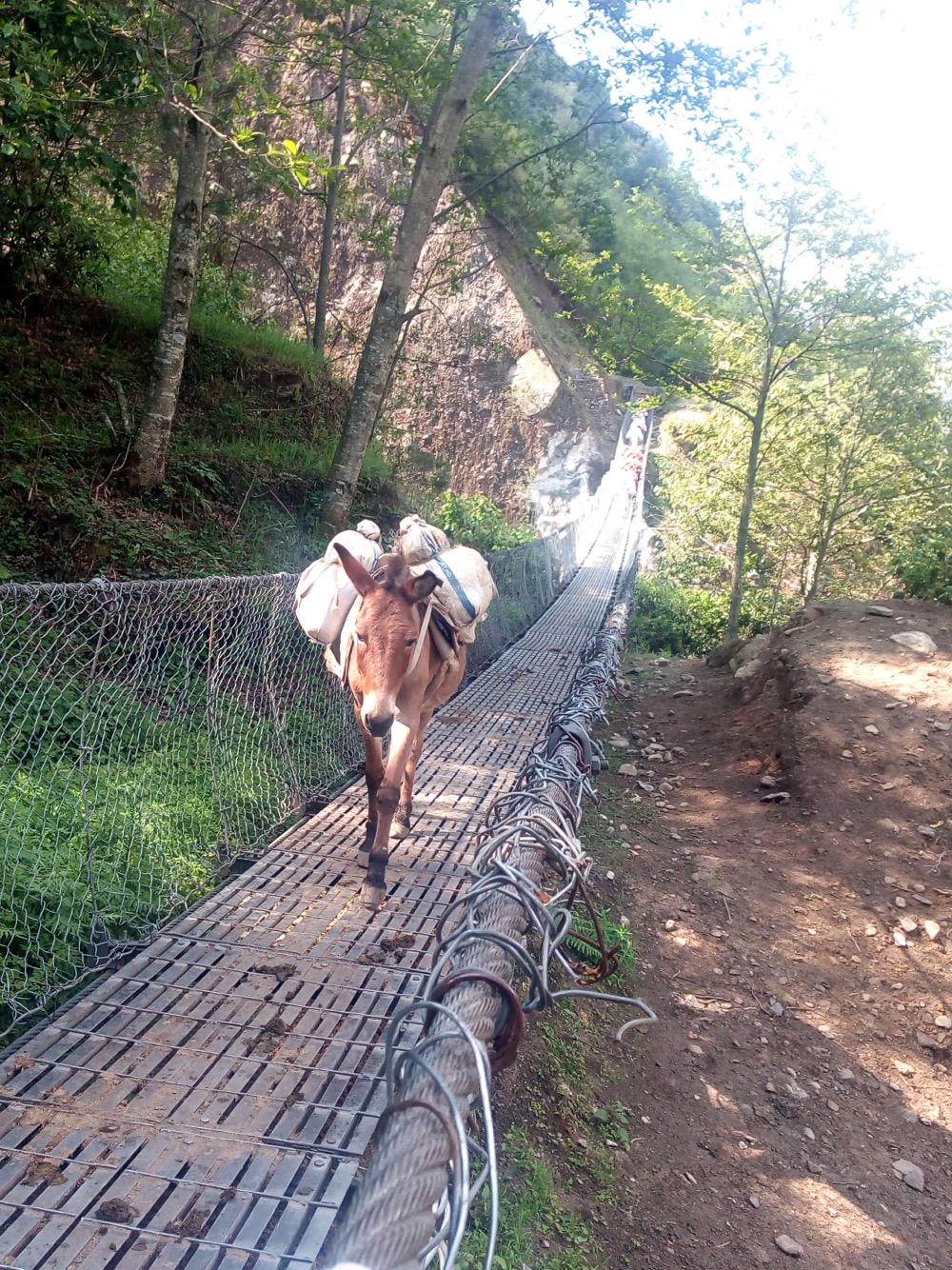Мда, надо было сразу писать чем же примечателен день - а то всего и не упомнить. Вроде как почти всё время шел дождь. А ещё ослы, или пони или мулы. От них веяло какашками и какой-то безысходностью. А своим копытами они превращали дорогу в кашу с островками камней по которым и прыгали трекеры.