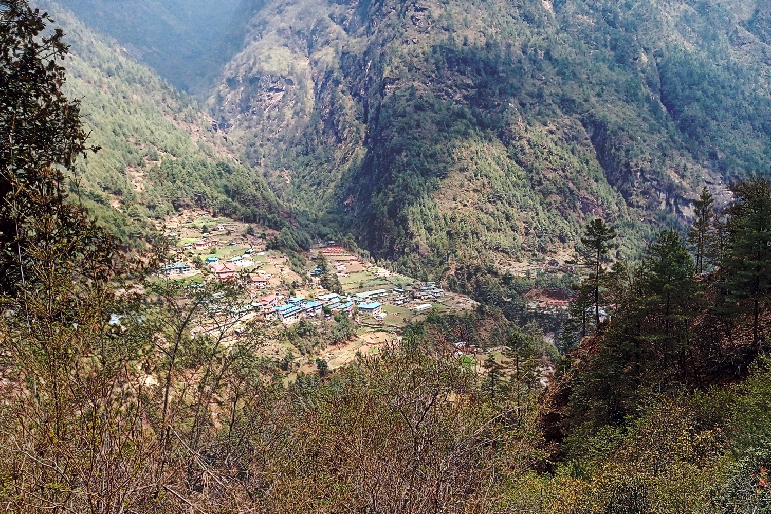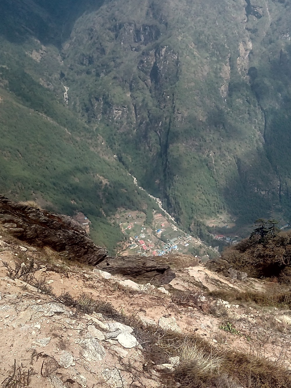 Вечером расспросила хозяина за дорогу через Конде. Сказал, что дорога однозначна, заблудиться не возможно. Точки развилки две. Первая после ГЭС - там надо держаться правее и не переходить на другую сторону ущелья (если есть сомнения - можно зайти на саму ГЭС - уточнить). Вторая, вот тут внимание (!) перед Pare. На бумажной карте дорога якобы проходит через это самое Паре. На деле туда спускаться не надо (хотя главная дорога пойдёт вниз). Будет небольшая второстепенная тропинка проходящая как бы над деревней - вот надо туда. По мапс.ми эта точка тут: 27.823191, 86.666069