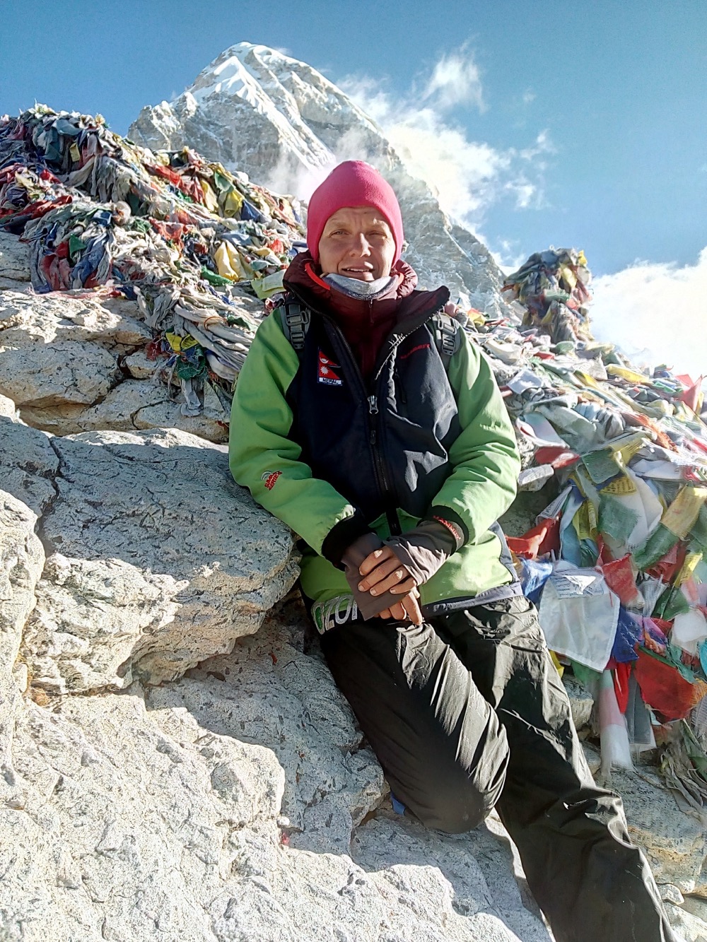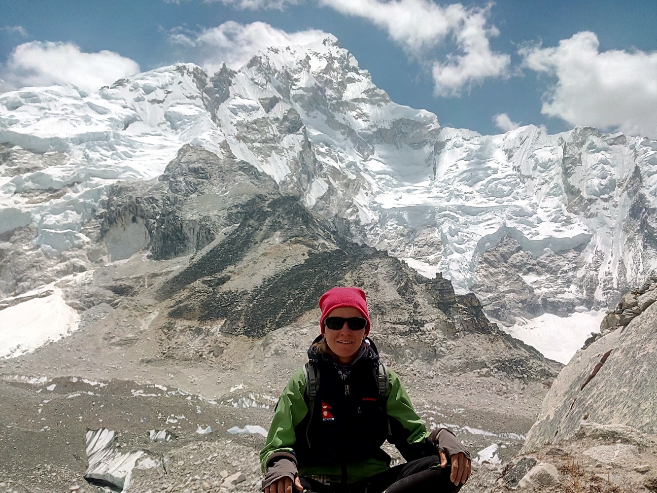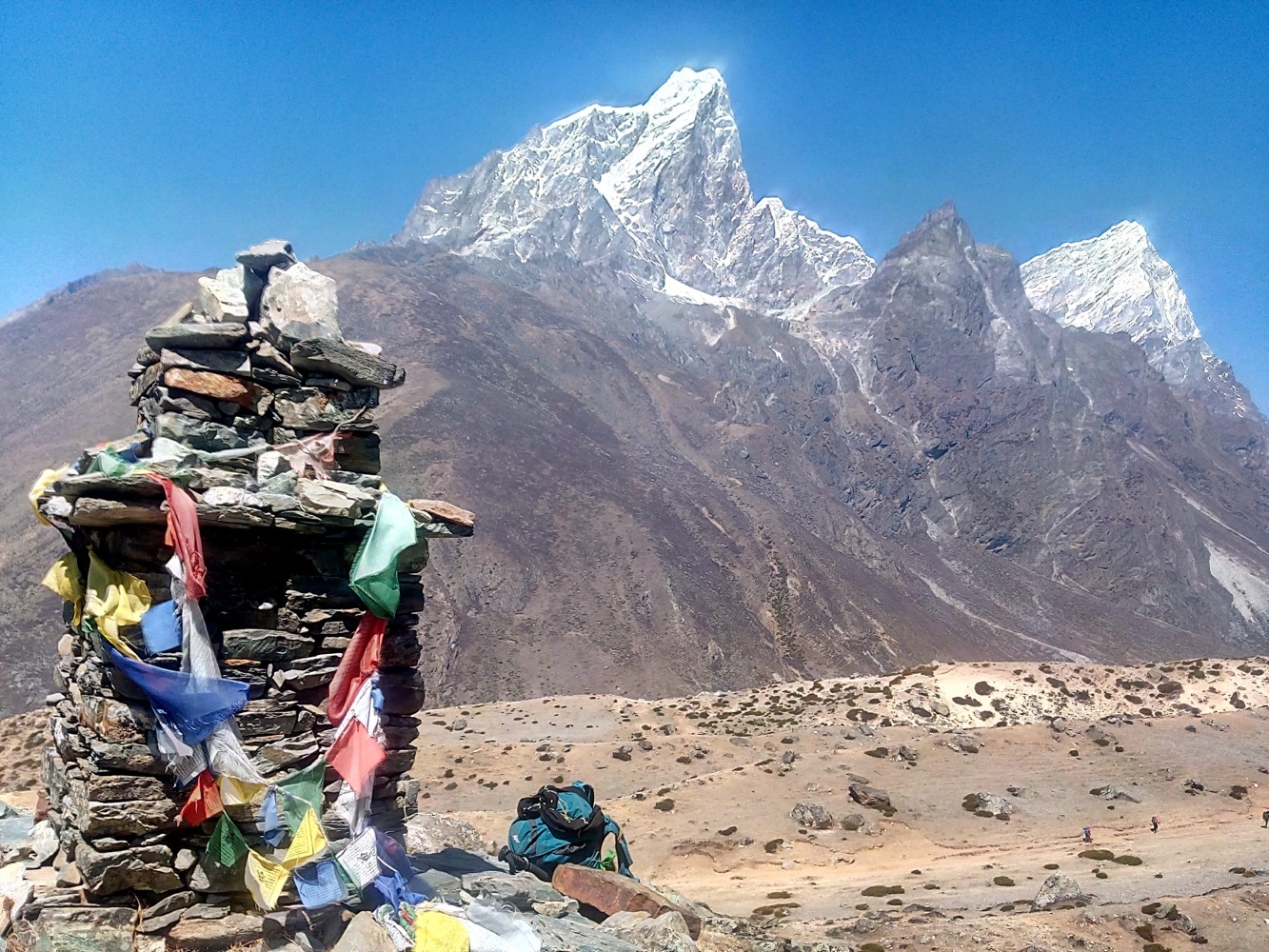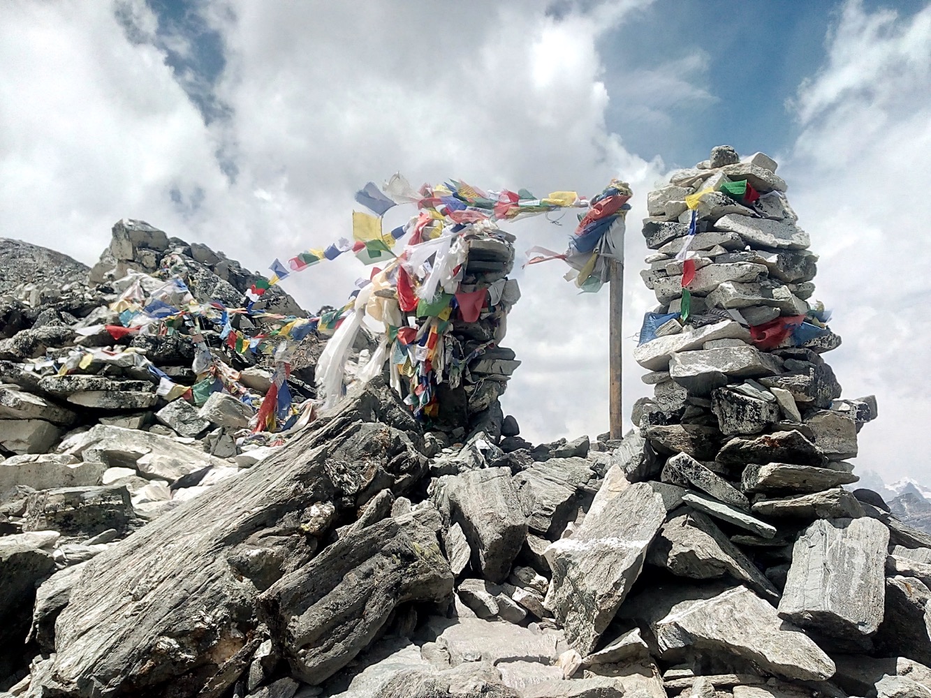 Снега на перевале уже нет (ой, хорошо, что не купила и не потащила никаких кошек!). Если места где нужно сильно вверх, есть где не сильно... :) В целом - никакого треша или чрезмерной тяжести нет. Жаль, что в Кхумбу нет красивых табличек на перевалах и бейс-кемпах, типа как на Аннапурне: