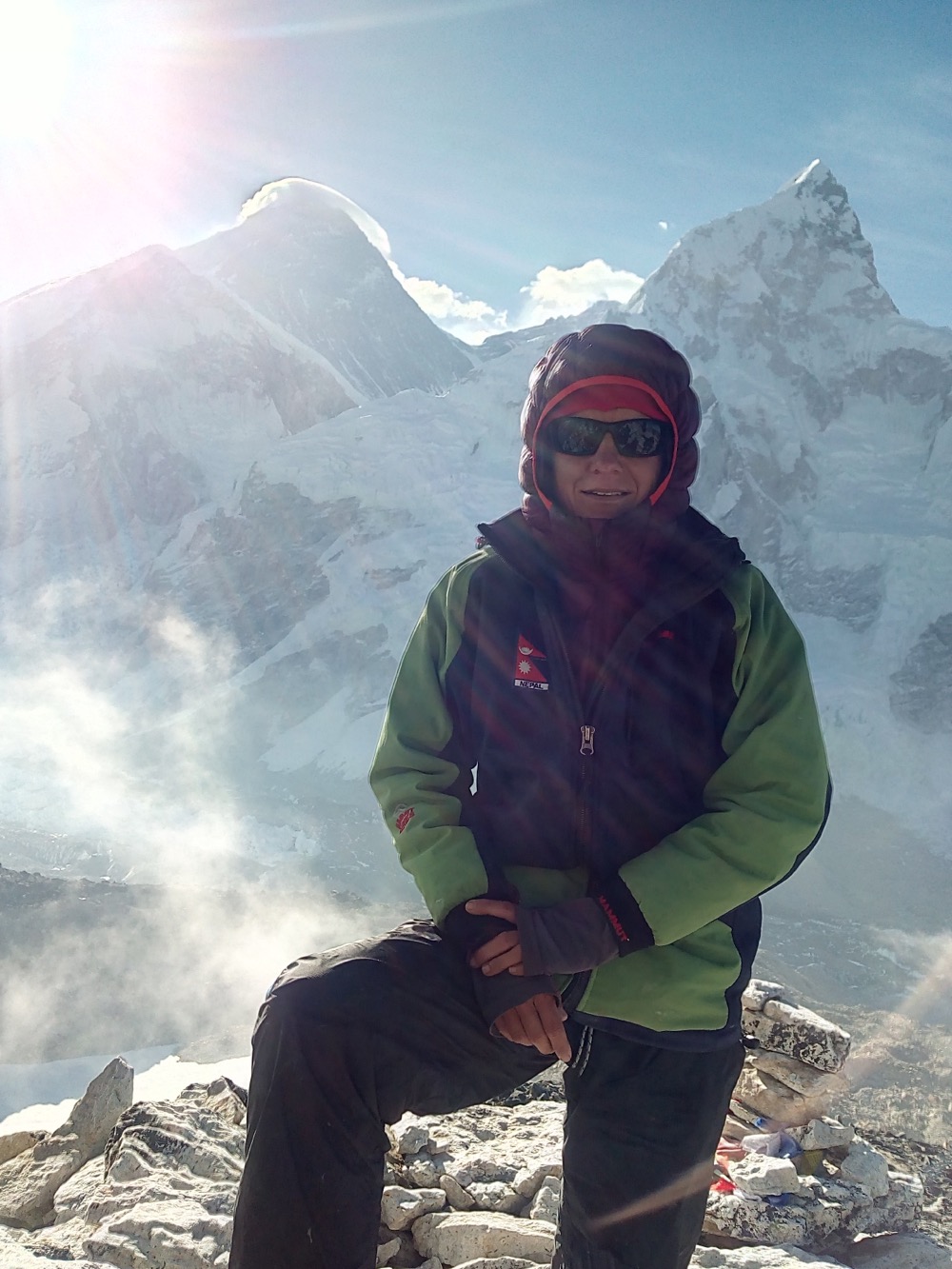 Гиды все, как один подорвались в 4 утра со словами "Калапатар, бест-тайм". Окей. Пис-пис, фонарик на лоб, побежали... Цепочка фонарей уже нескончаемо ползет вверх. Очень много фонарей, фактически очередь. Кто-то кого-то обгоняет, кто-то отстает... Почти все идут группами. Мне как-то неожиданно тяжело дался этот подъем, никак не могла подобрать свою скорость. Начинала быстрить и тут же дыхание сбивалось, приходилось останавливаться. В конце-концов пристроилась за ребятами калифорнийцем, чешской герлой и ихним гидом. Ребята шли очень медленно, и мне болтаться у них в хвосте оказалось неожиданно комфортно. На Калапатаре крайний раз встретила киношников из Катманду с которыми мы периодически пересекались с самого низу. Обещали скорый выход фильма на #nepal8thwonder.