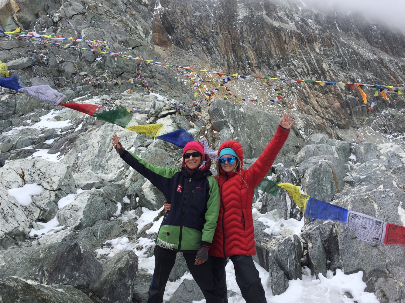 И, вообще, там атмосфера поприятнее, чем на основном эверестовском треке. Много восходителей и сходителей с АйлендПика. Это уже другой уровень - кошки, ледорубы (ах, я тоже так хочу!). Полуобморочных трекеров глотающих таблетки каждые три часа не видать. Однако же всё сконцентрировалось во мне: глазик, поцарапанный год назад, начал сильно слезиться и болеть. Ну и симптомы горняшки в виде тошноты и головной боли :(.