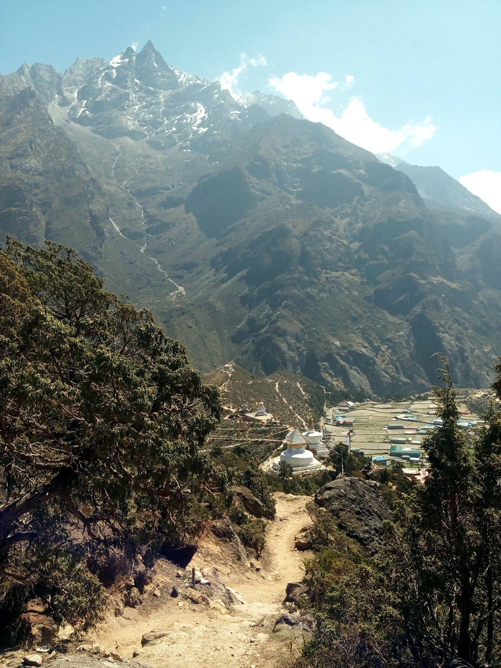 В Тенгбоче был кстати первый не прикольный лодж с какими-то космическими ценами за еду и милк-ти из пакетика. Видать это мне досталось за то, что грубо оттолкнула Татьяну с её женскими "ну давай поцелуемся на прощание"...
