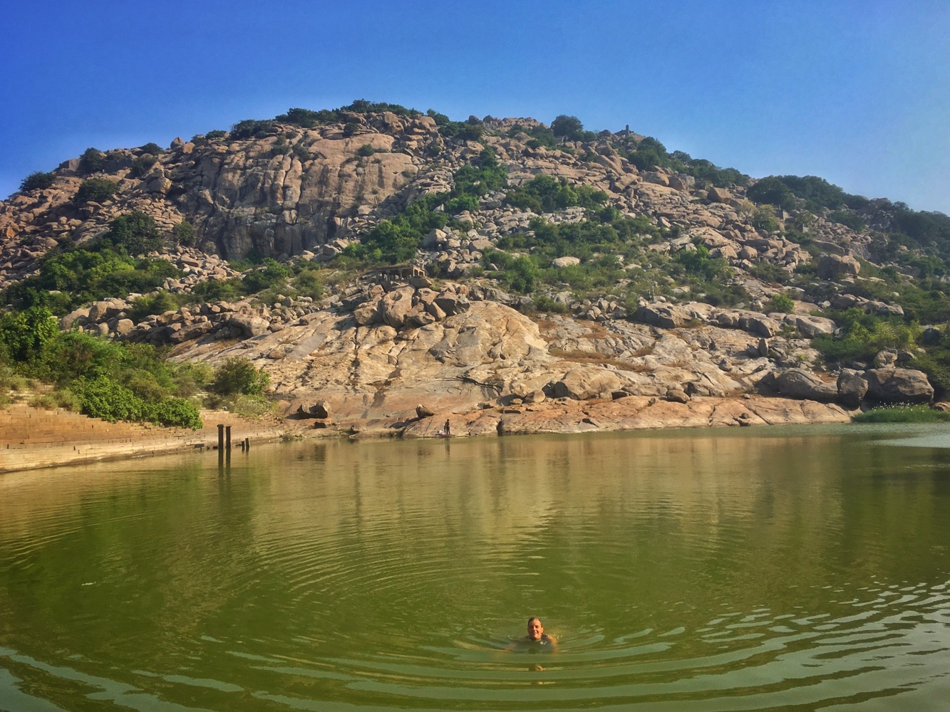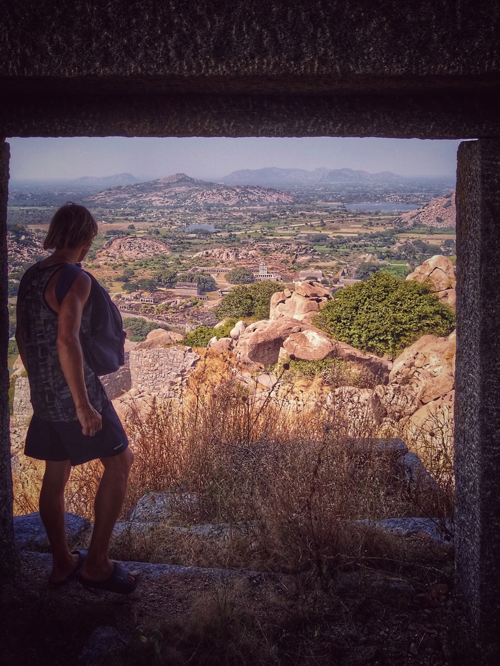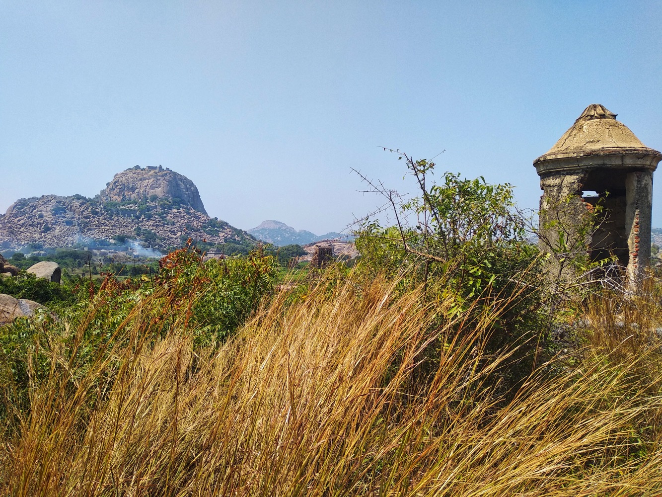 На самом деле это не один форт, а целая система укреплений и храмов. Есть три основных холма/горы. На той, что в mapsme называется Chakkilidurg - руины в руинном состоянии: обвалившиеся ступени, покинутые навесы и остатки башен. Тропа еле проглядывается, людей нет, можно почувствовать себя первооткрывателем. И ещё дикообразом, потому что везде колючки. Колючие кусты, колючая трава, какие-то неопознанные колючие шары на ножках. Вся это флора остается на штанах, царапая изнутри потные коленки *_*