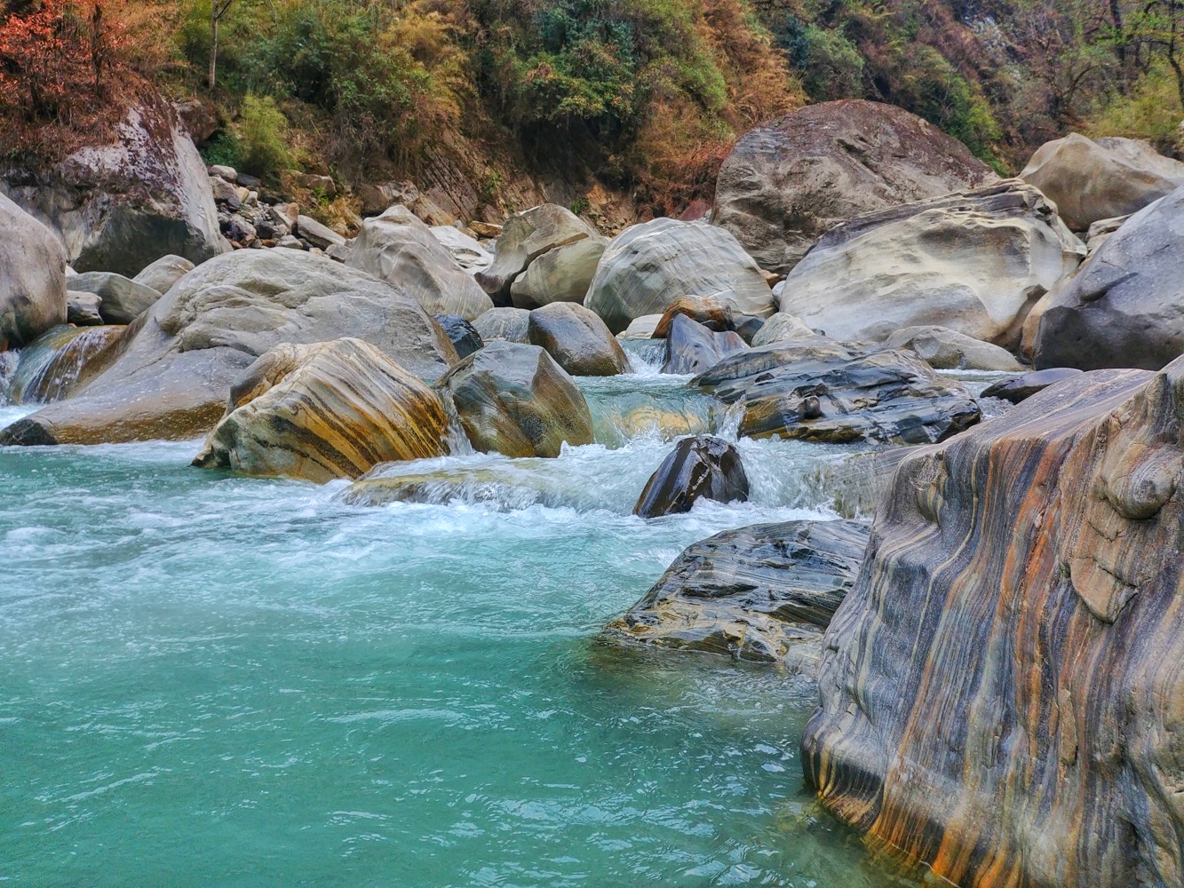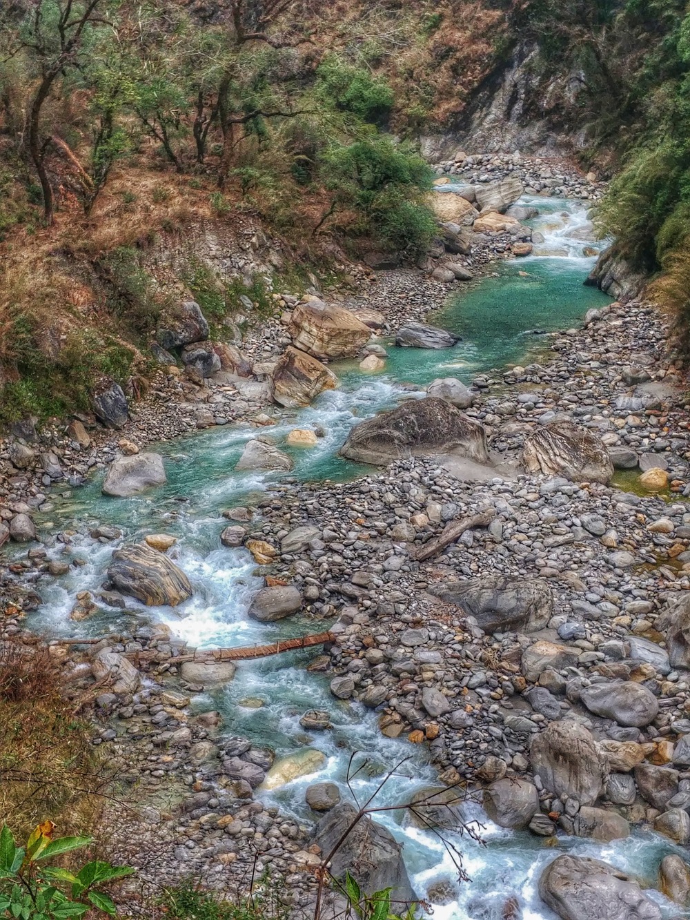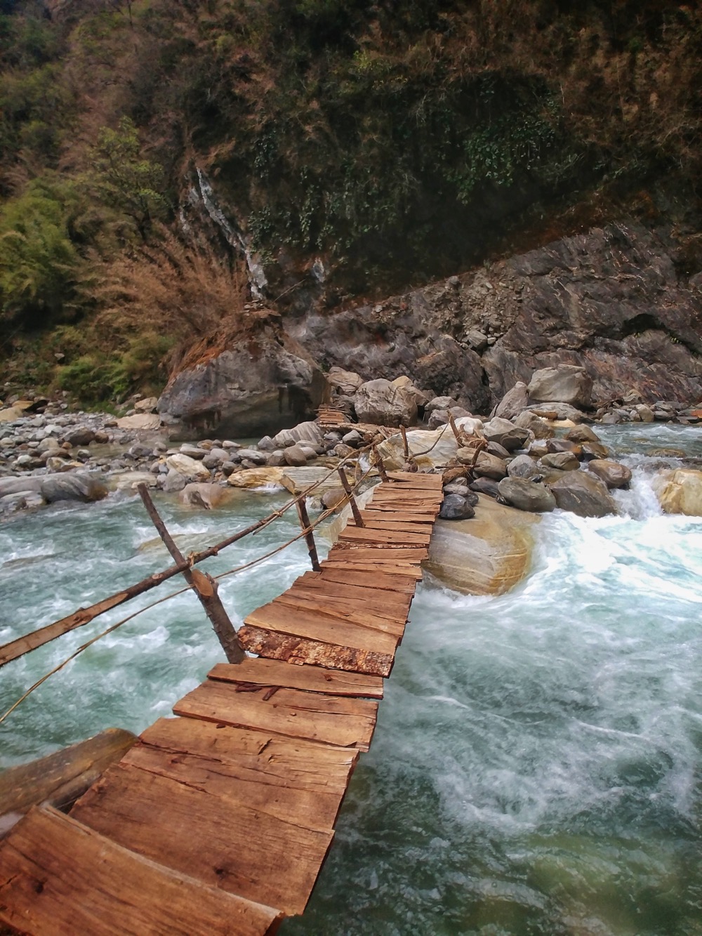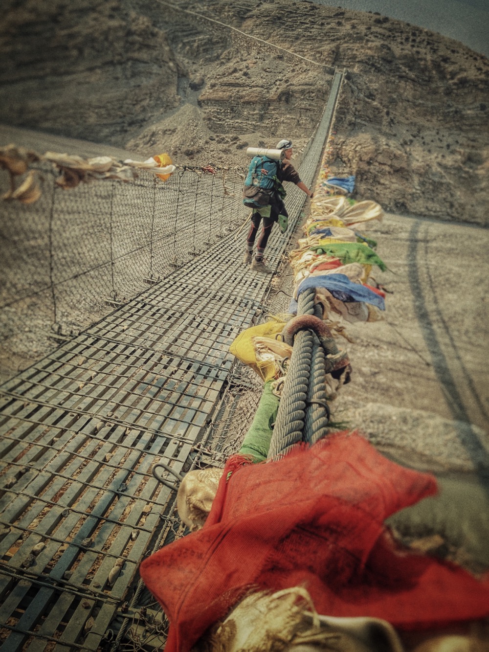 по реке в направлении Долпы. Пришлось бежать/догонять. Долго. Пару