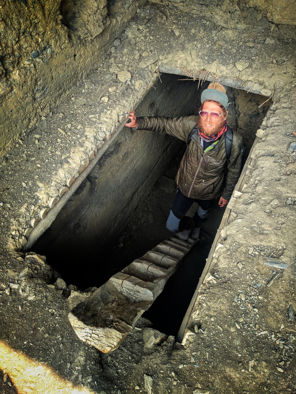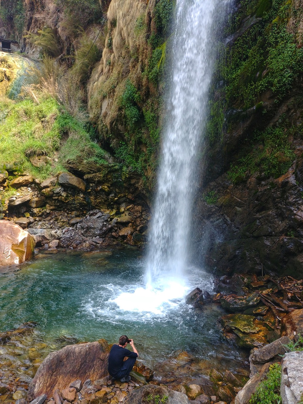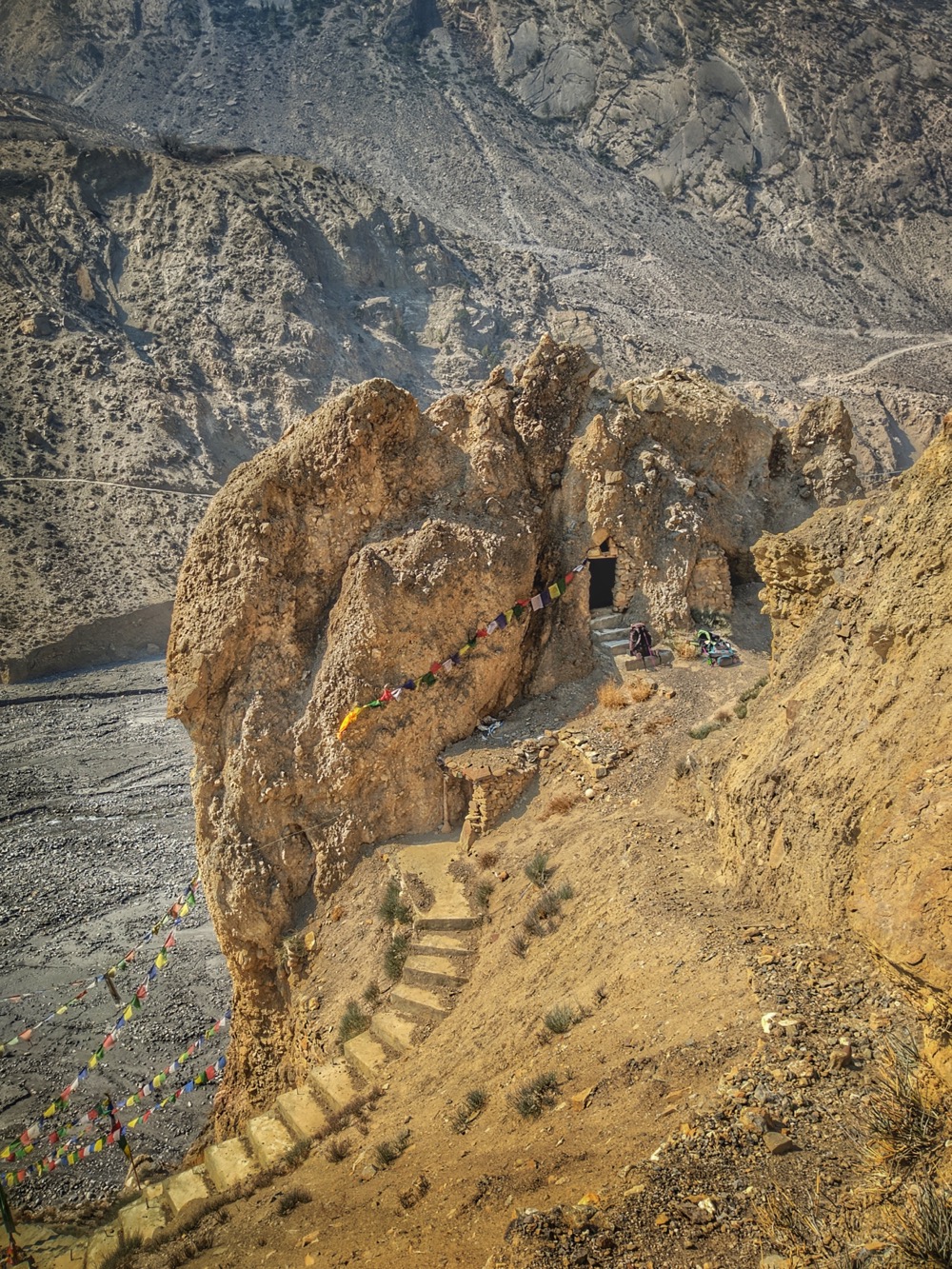 Начавший накрапывать дождик, загнал нас на ночь в грот на реке. Балбес решил, что лучше быть мокрым, но живым. Трус с Бывалым, понадеявшись на карму, поставили палатку внутри осыпающегося грота, решив, что сегодня не подходящий день, чтобы промокнуть (28.43997, 83.385072):