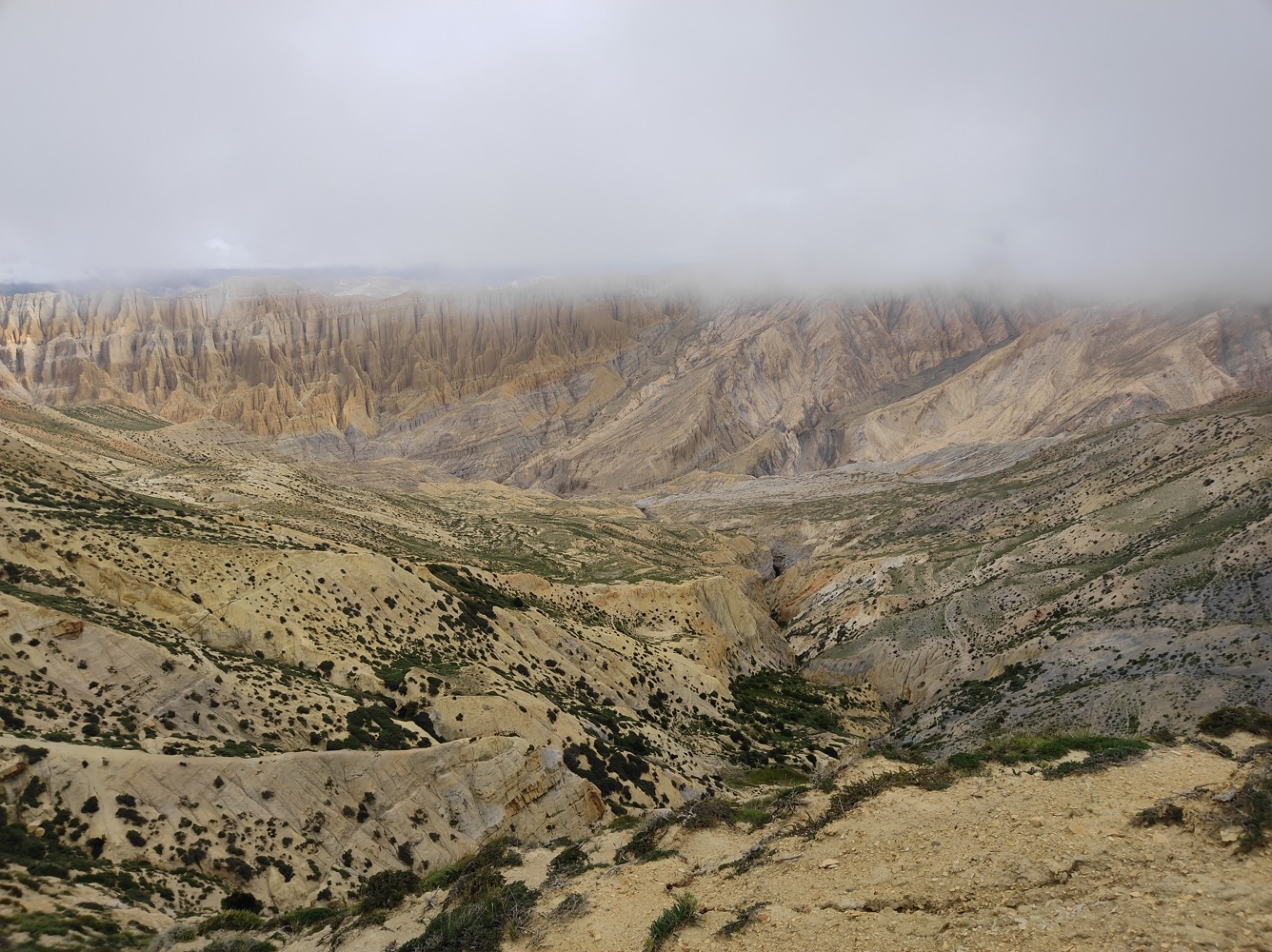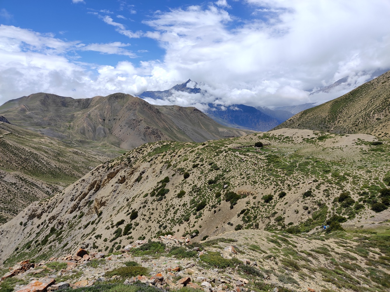 2022 Aug 22 See all posts31 июля в компании опытной походницы (в активе множество треков, в том числе вокруг Дхаулагири) отправился в Верхний Мустанг - нелегально, т.к. пермит слишком до́рог. Планировали достигнуть реки, на отмелях которой можно найти салиграмы (чёрная овальная окаменелость с запечатанным внутри трилобитом, один из символов Вишну), переночевать в палатках и на следующий день вернуться обратно, не привлекши внимания местных стукачей (со штрафа за нелегальное проникновение в пермитную зону информатору полагается щедрый процент). С погодой повезло, однако спина с отвычки заныла под рюкзаком.