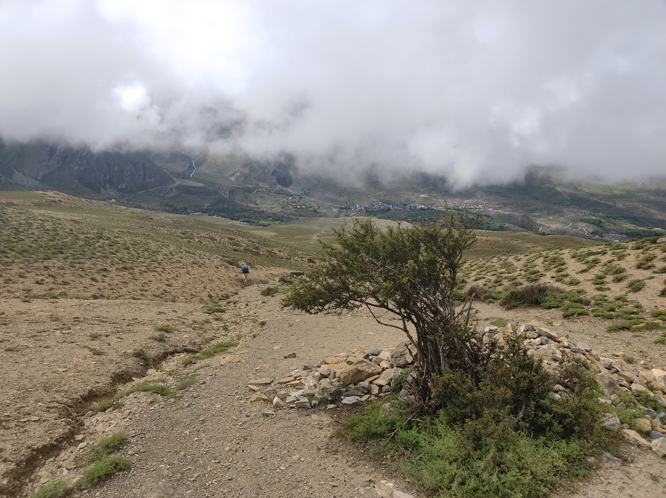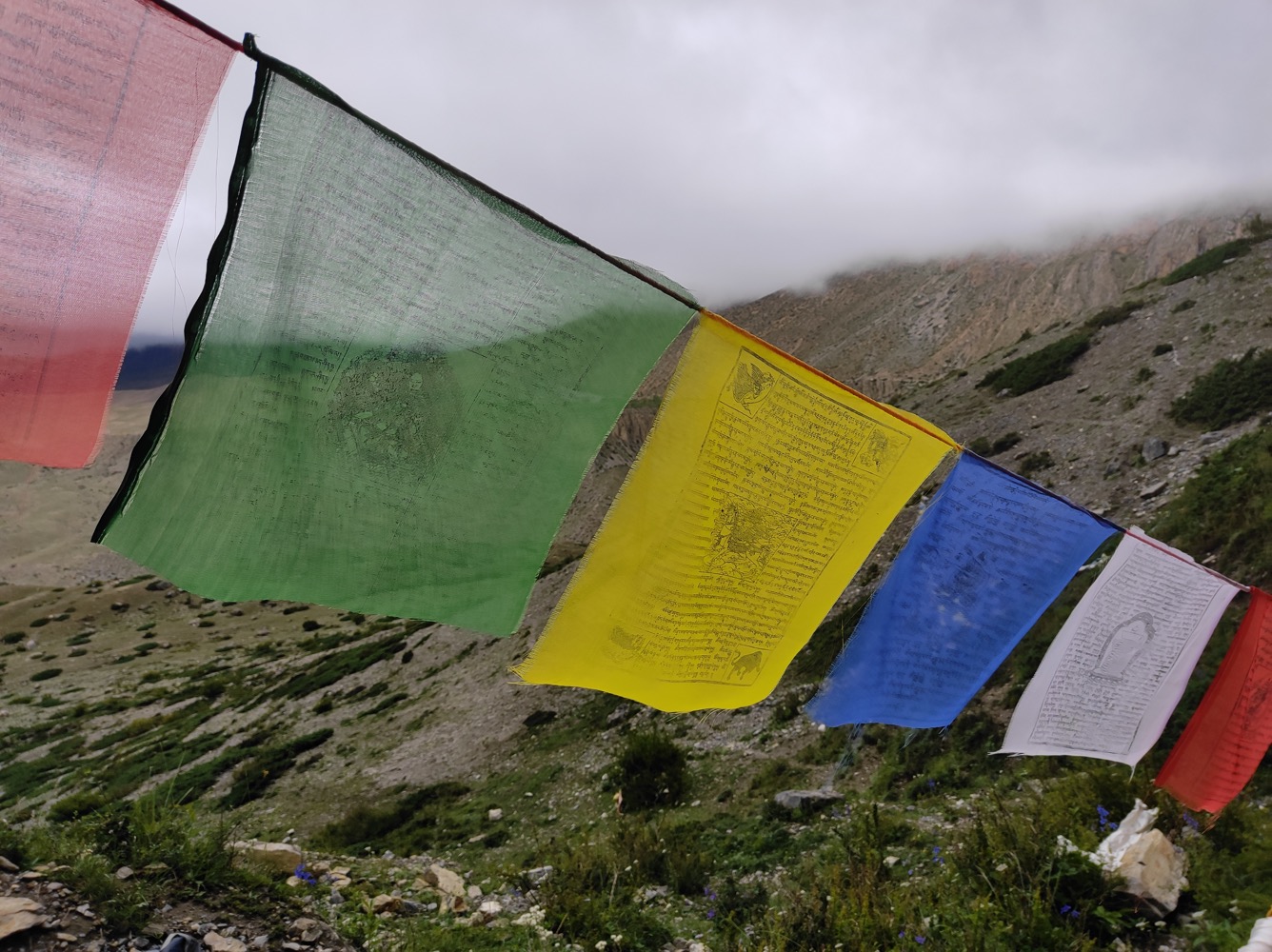 С наступлением сумерек полюбовались облачной рваклей, подсвеченной последними студёными лучами, и забрались в спальники. Надо заметить, для высоты 4.120 м было необычно тепло... вследствие стремительного глобального потепления "дождевая тень" Аннапурны прохудилась, и муссонные фронты заметно смягчили здешний климат. Засушливые ранее районы познали все прелести мунсуна - в частности, колоритные тибетские жилища с плоской крышей оказались беспомощны перед перманентной сыростью, и нынче хозяева спешно возводят двускатные металлические кровли.
