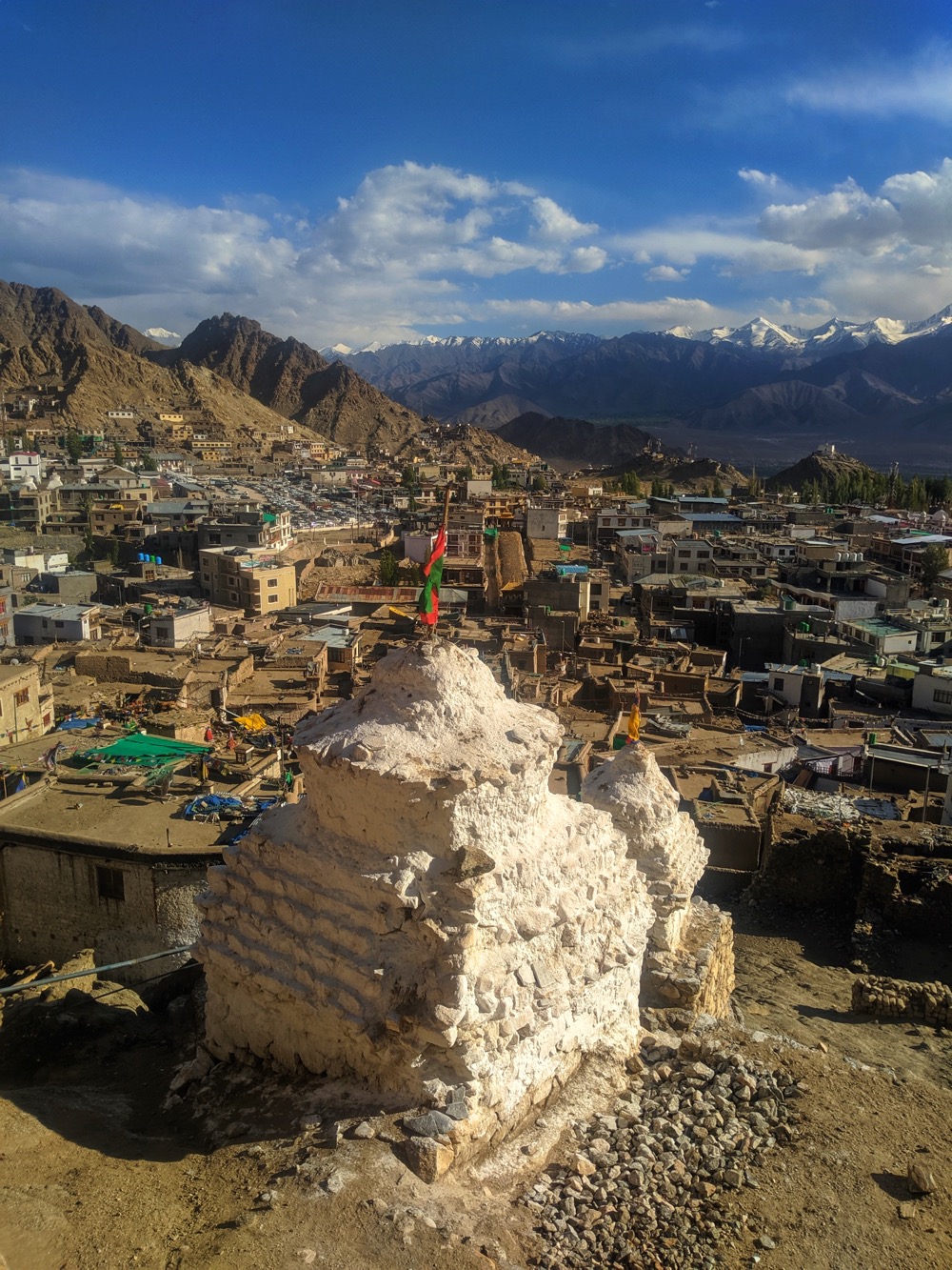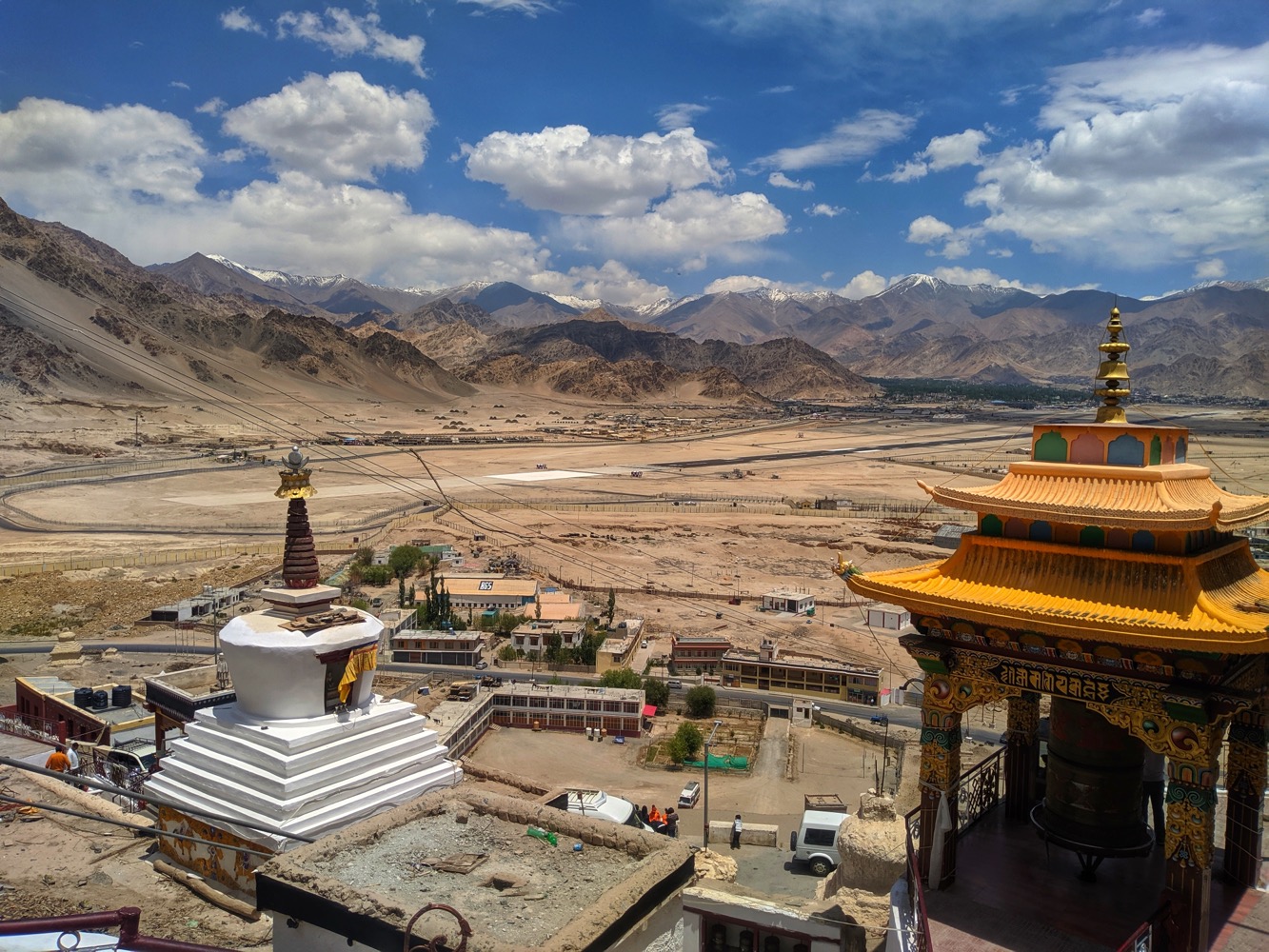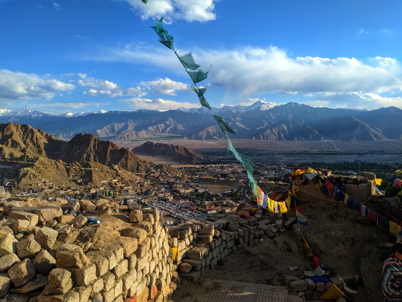 Первый день просто гуляли по Леху. Маркет и всякие закоулочки. Абрикосовый и облепиховый сок. Залезли в гомпу над городом и королевским дворцом. Оттуда бомбические виды: