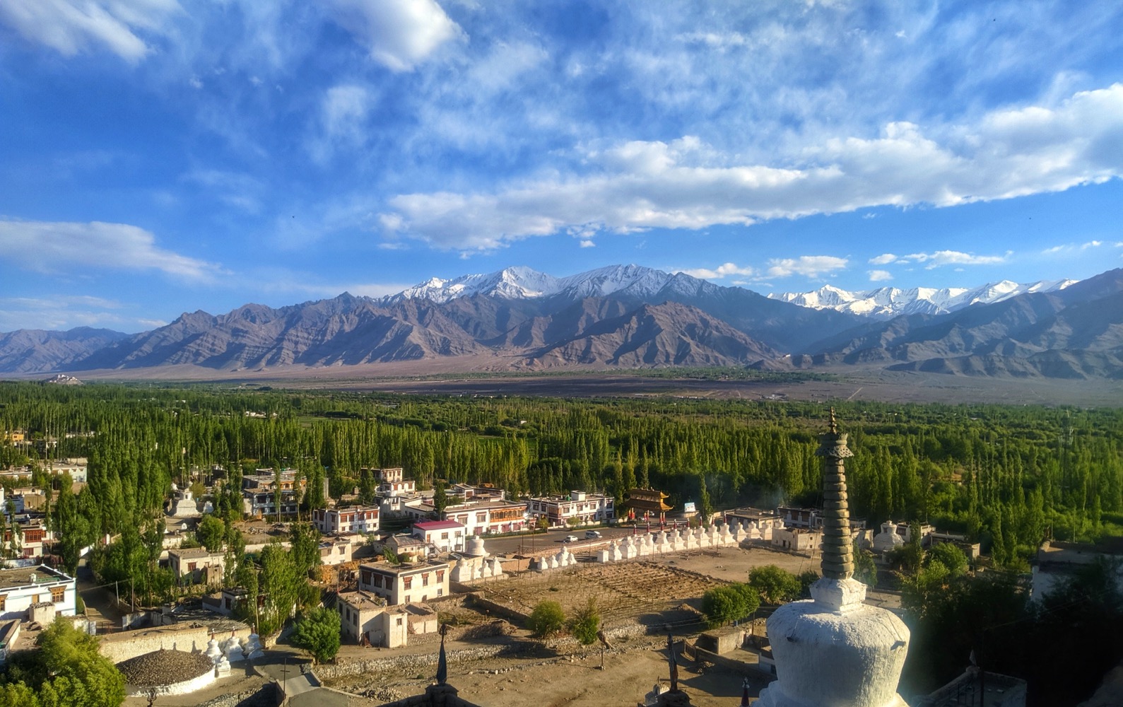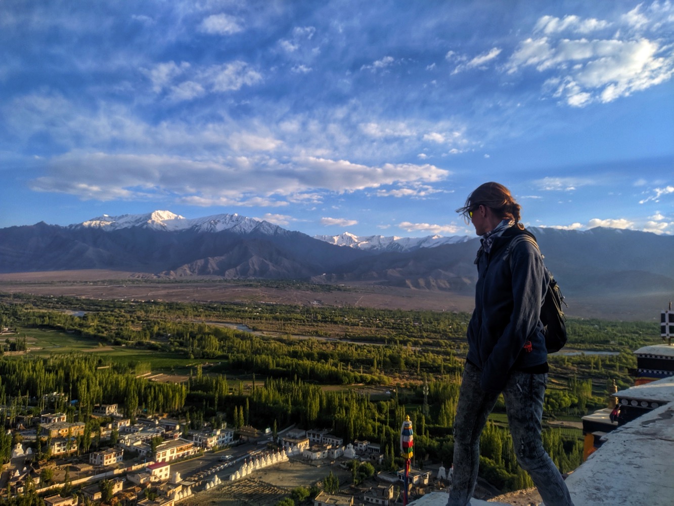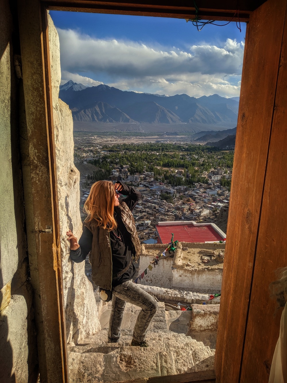 Первый день просто гуляли по Леху. Маркет и всякие закоулочки. Абрикосовый и облепиховый сок. Залезли в гомпу над городом и королевским дворцом. Оттуда бомбические виды: