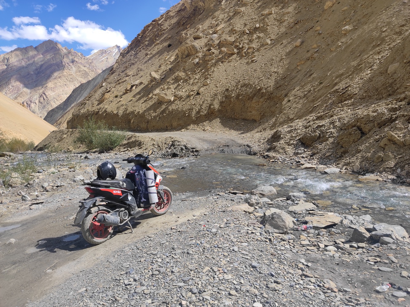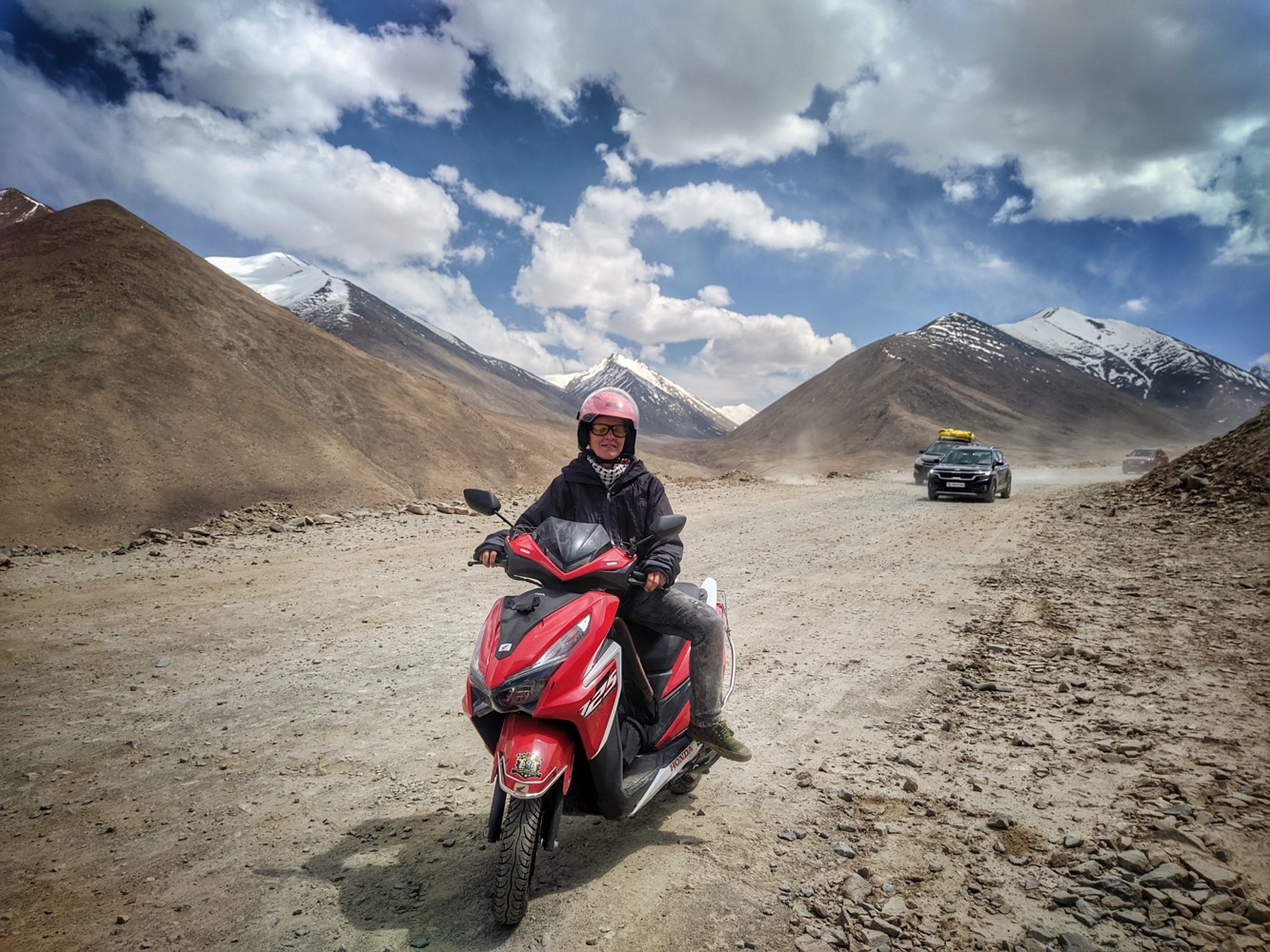 Лех - не такой большой город, все самое красивое/древнее/интересное находится за ним и далеко не в пешей доступности. Так как мы были втроем - товарищу пришлось осваивать скутер. Кто-то категорически против того, чтобы начинать учиться водить в горах. Может на узких обрывистых серпантинах так и есть. Но ближайшие 40 км от Леха в одну и в другую сторону (не в третью, не на Кардунг) широкая ровная дорога с минимумом траффика. Я считаю условия почти идеальные. В общем взяли 2 скутика по 700 (норм для "здесь" за подневное).
