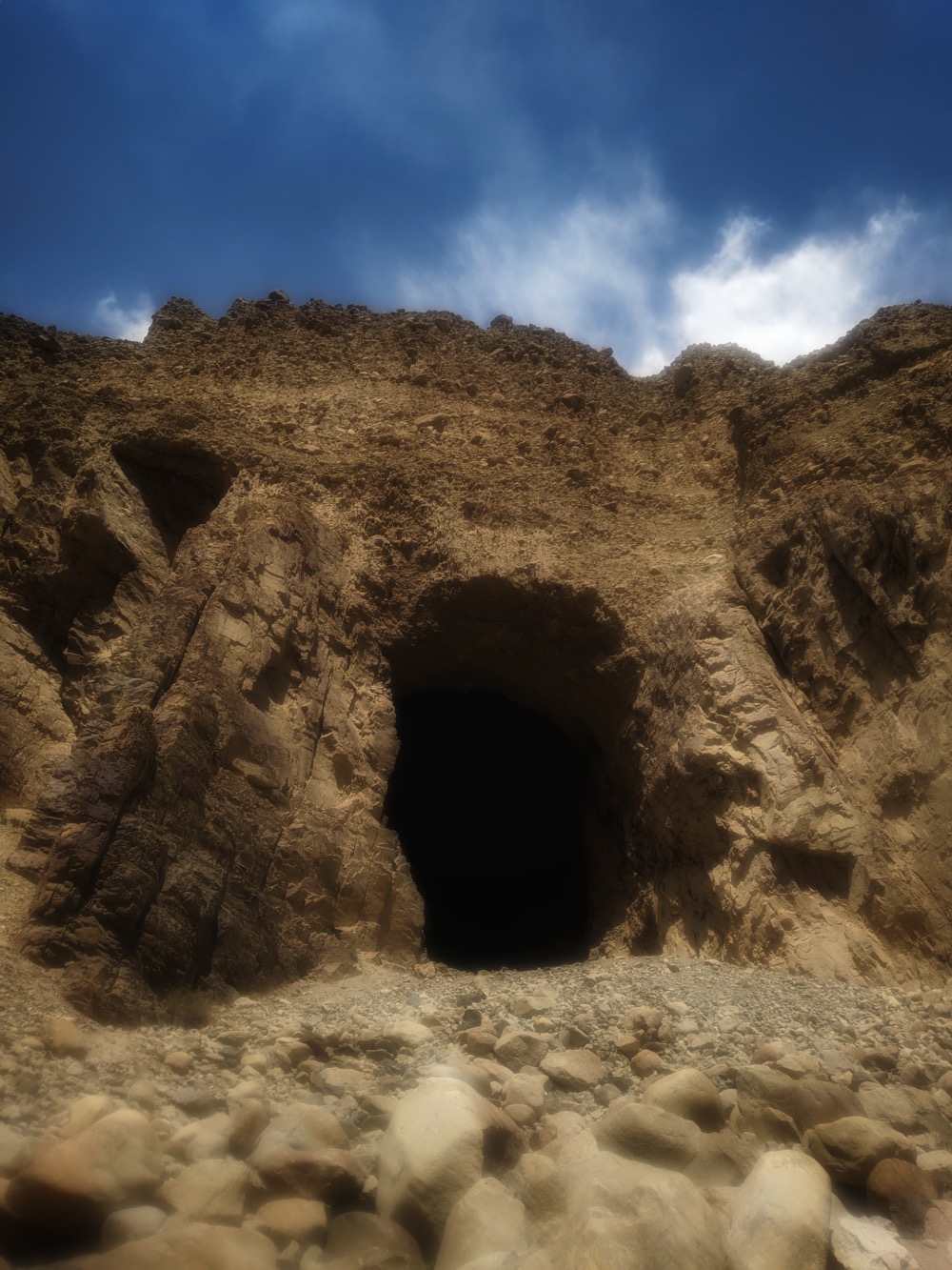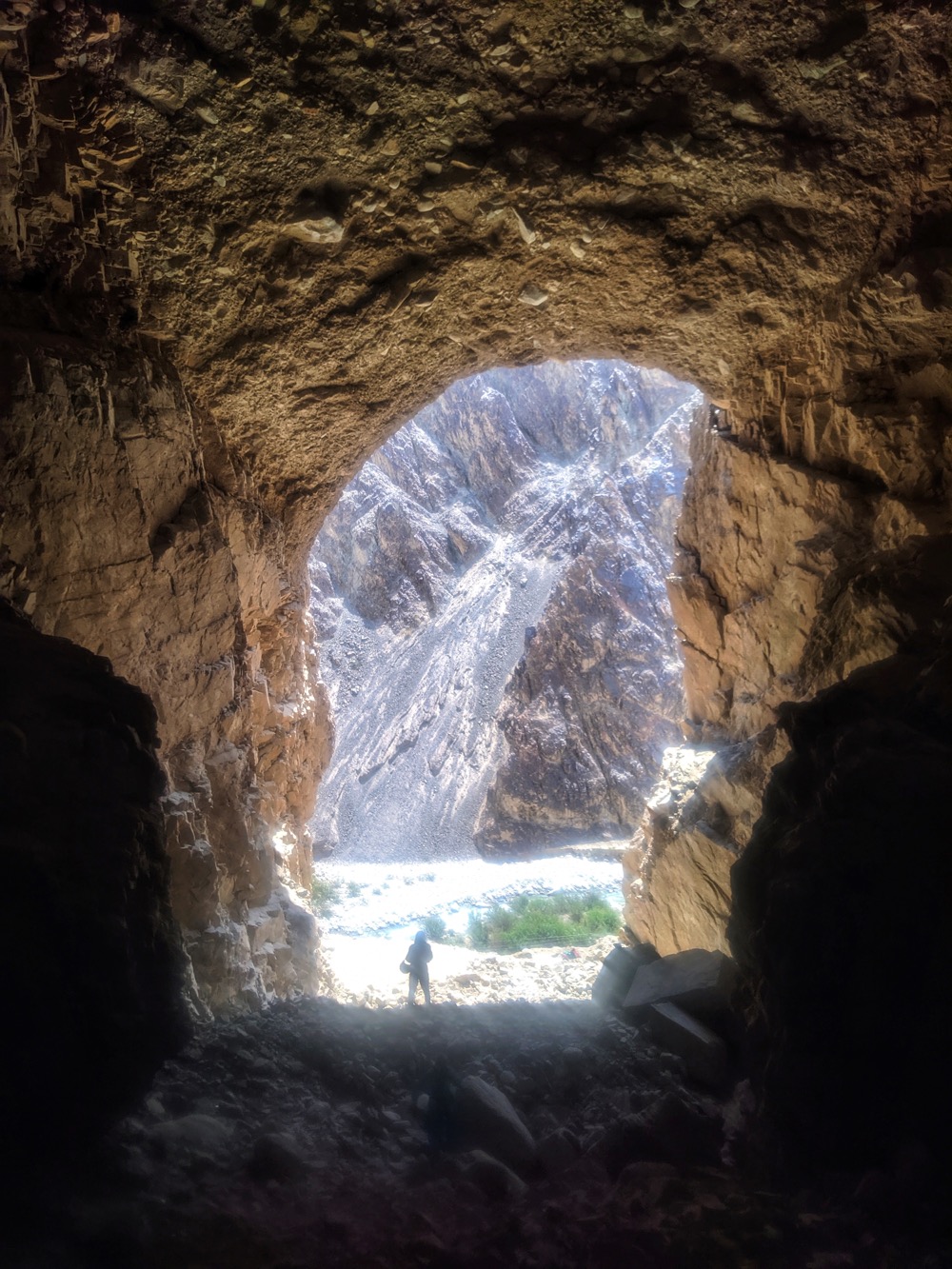 Еще мы ответвлялись искупаться вот сюда: 34.568647, 77.456317. Просто решили проехать немного по красивой дорожке в неведомом направлении и нашли вот такую пещеру: