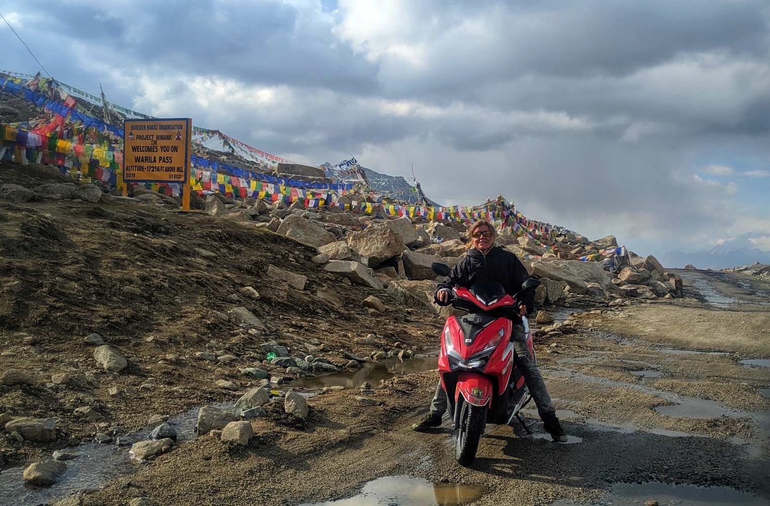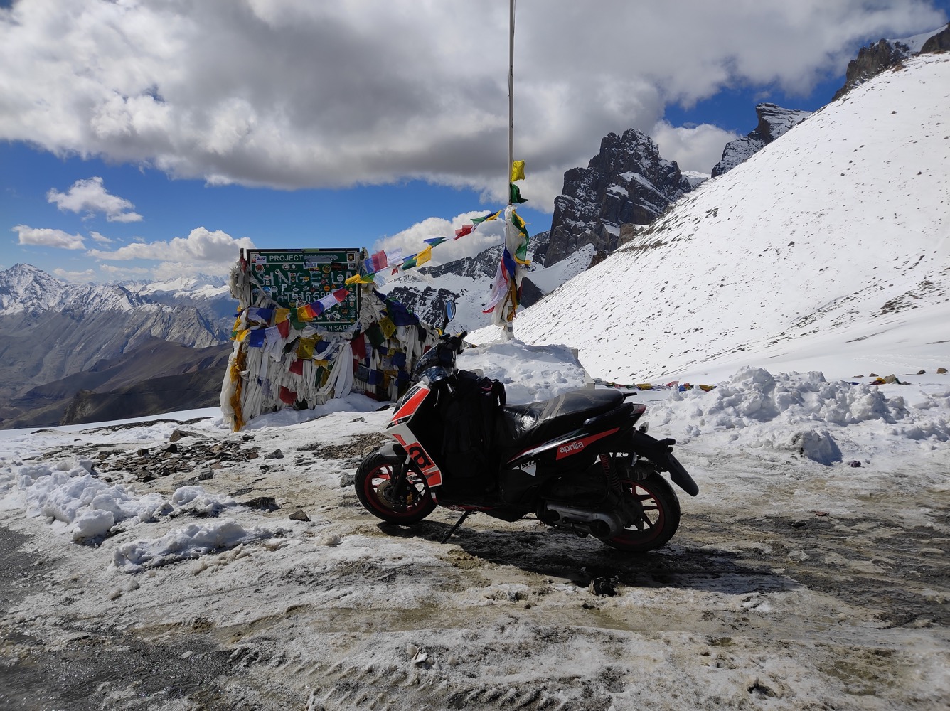 столбекубе, что он есть и повернули:Перевал кайфовый, совсем немного ниже КардунгЛа, но совершенно не популярный. За все время пока ехали вверх и вниз через него - встретили только двух индусов на энфилдах, которые очень за нас переживали, как мы вообще на скутика и как мы вообще узнали про эту дорогу: