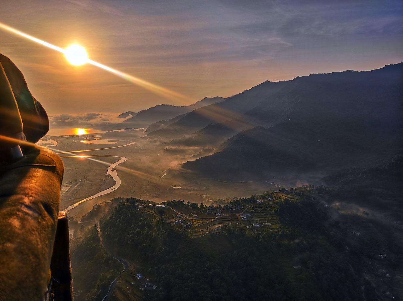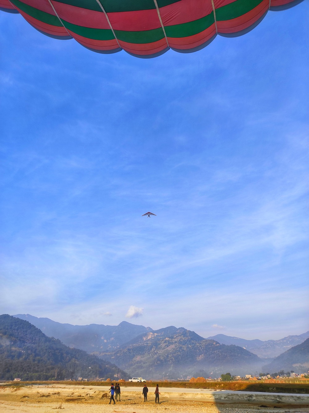 Воздушный шар. Тут будет много фоток, потому что редкое и красивое. И вообще - если надо фотки с воздуха - то это вот как раз про него. Медленно, 360 обзор, не мешают ни шлем, ни крылья. Но штука самая не управляемая, может только вверх и вниз, остальное зависит от воздушных потоков.
