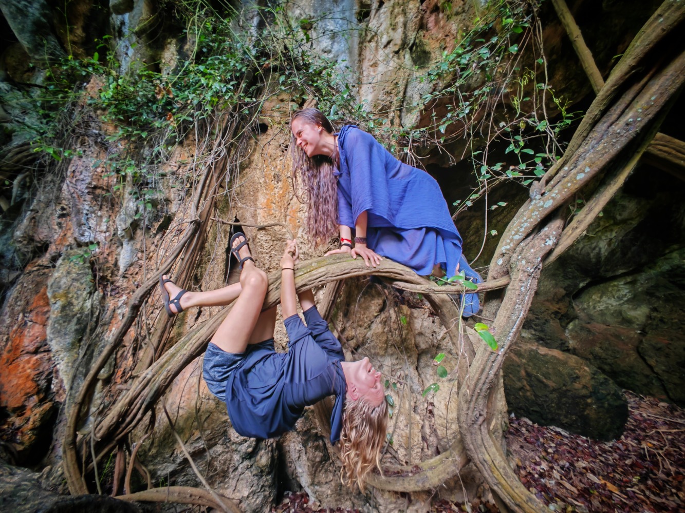 На следующий день уехали на Тонсай. Вот там намного дичее и прикольнее, так как добраться можно только на лодке (ну или пешком в отлив). К тому же там почти нет интернета, что тоже отсекает большую часть отдыхающих. Хотя, по сравнению с Пхукетом - Краби и так это абсолютное спокойствие и безмятежность... Так как все в общем-то были "не местные" и на отдыхе, то в каждом подходящем углу устраивали фотосессию: