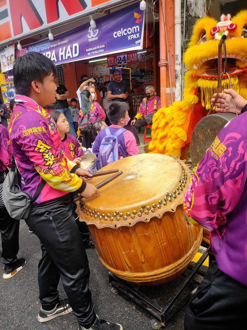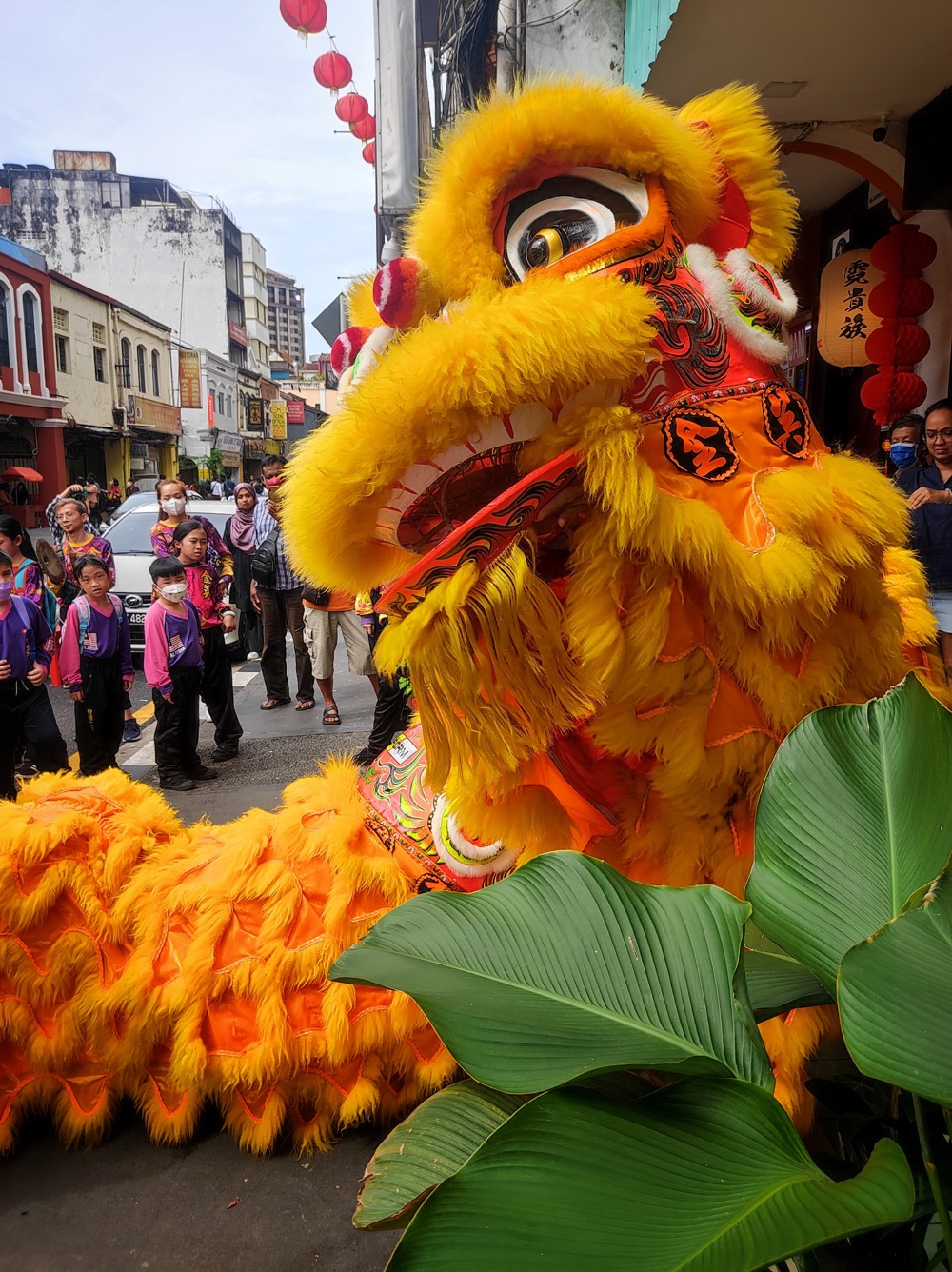 Китайский новый год. После танцев драконы кидаются мандаринами. Важно
