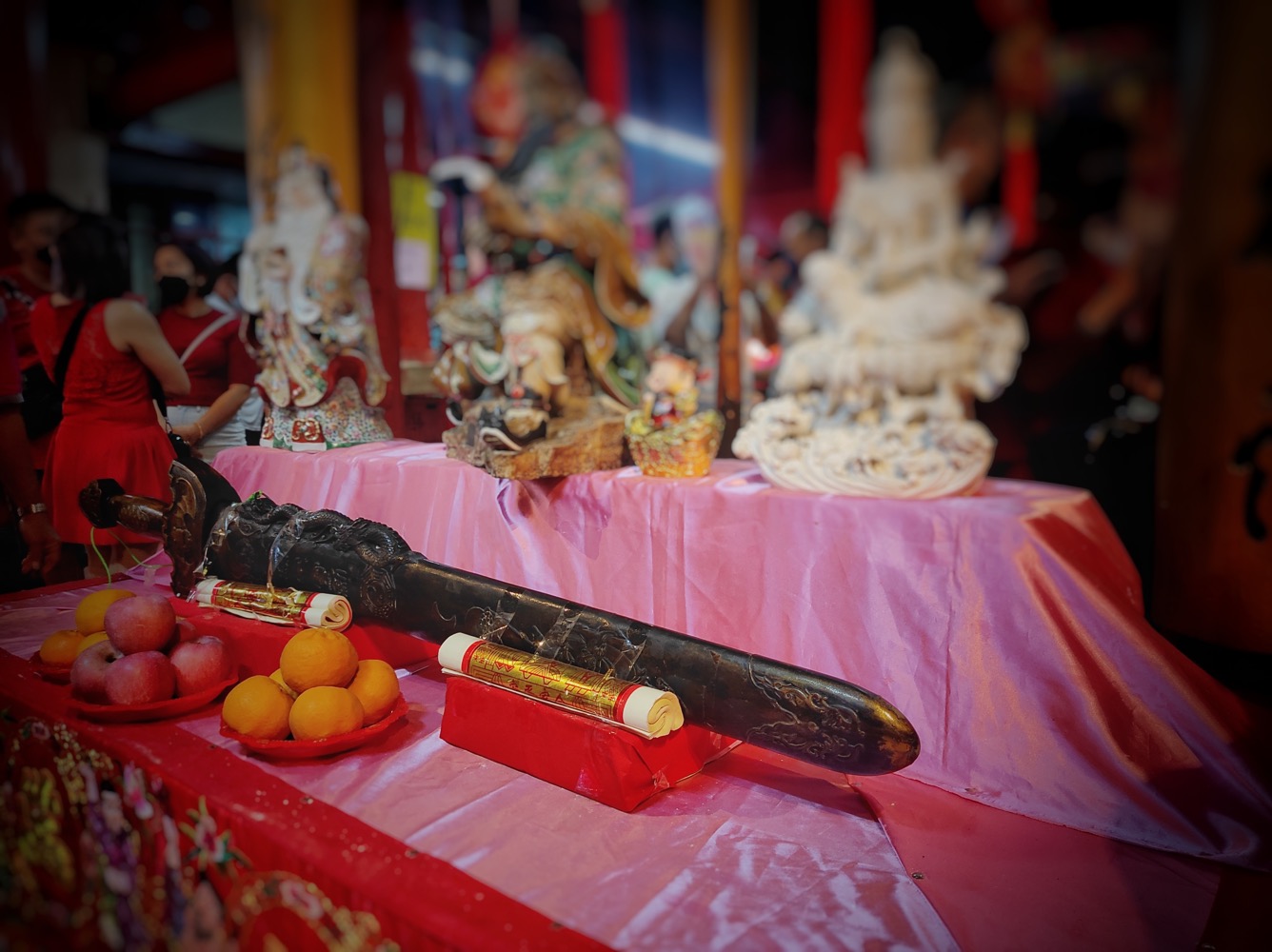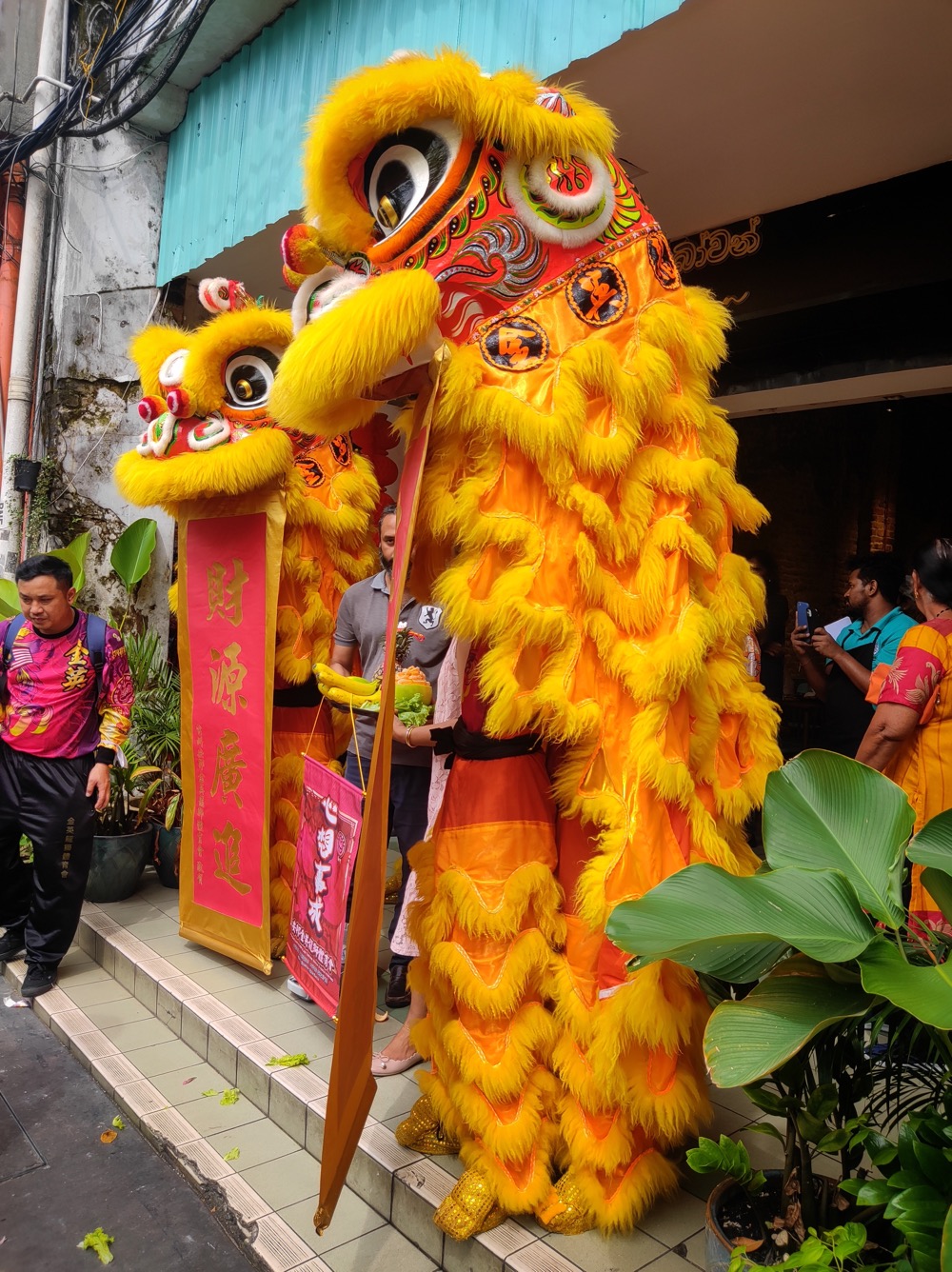 Китайский новый год. После танцев драконы кидаются мандаринами. Важно поймать - будет удача в новом году: