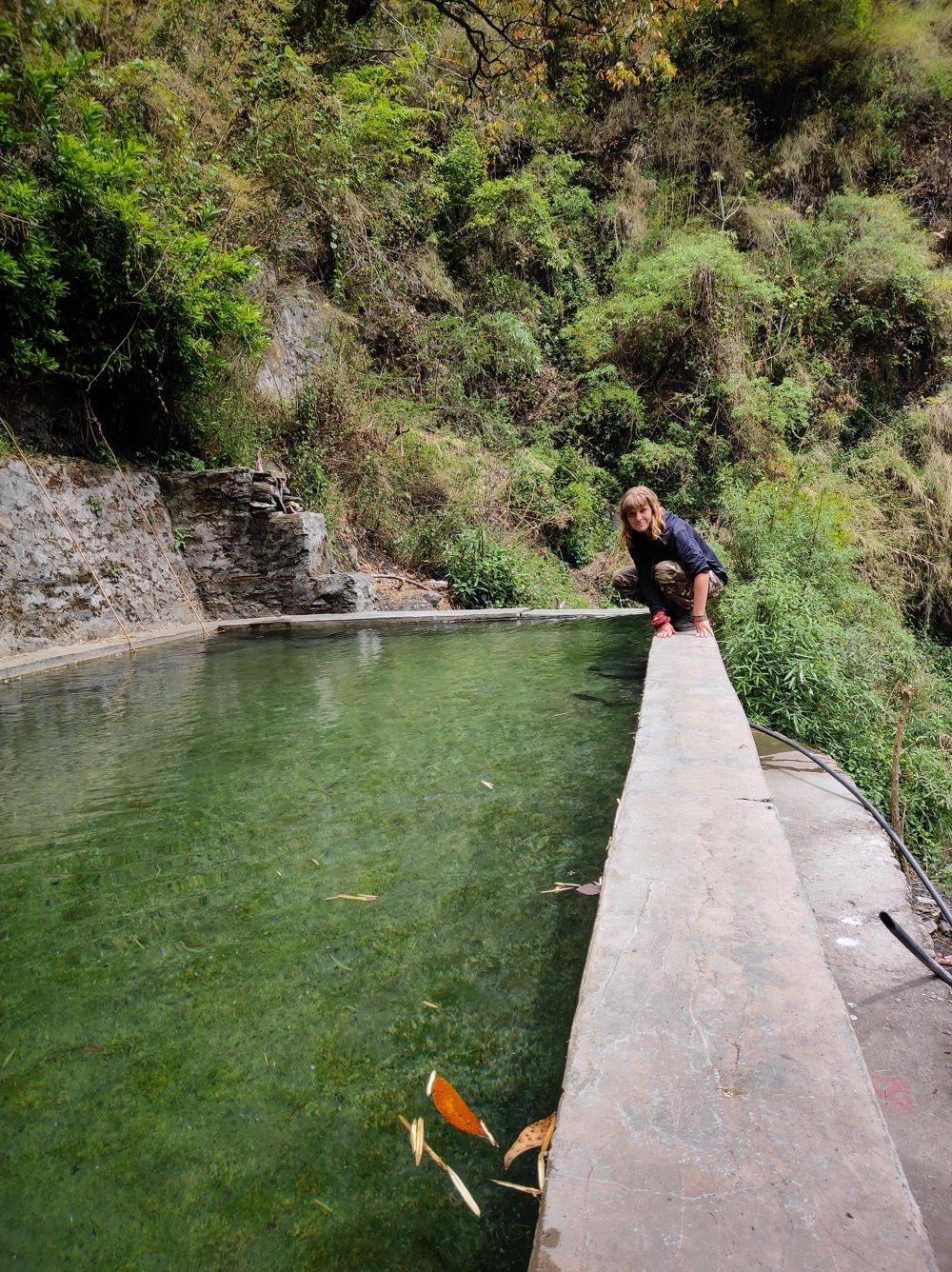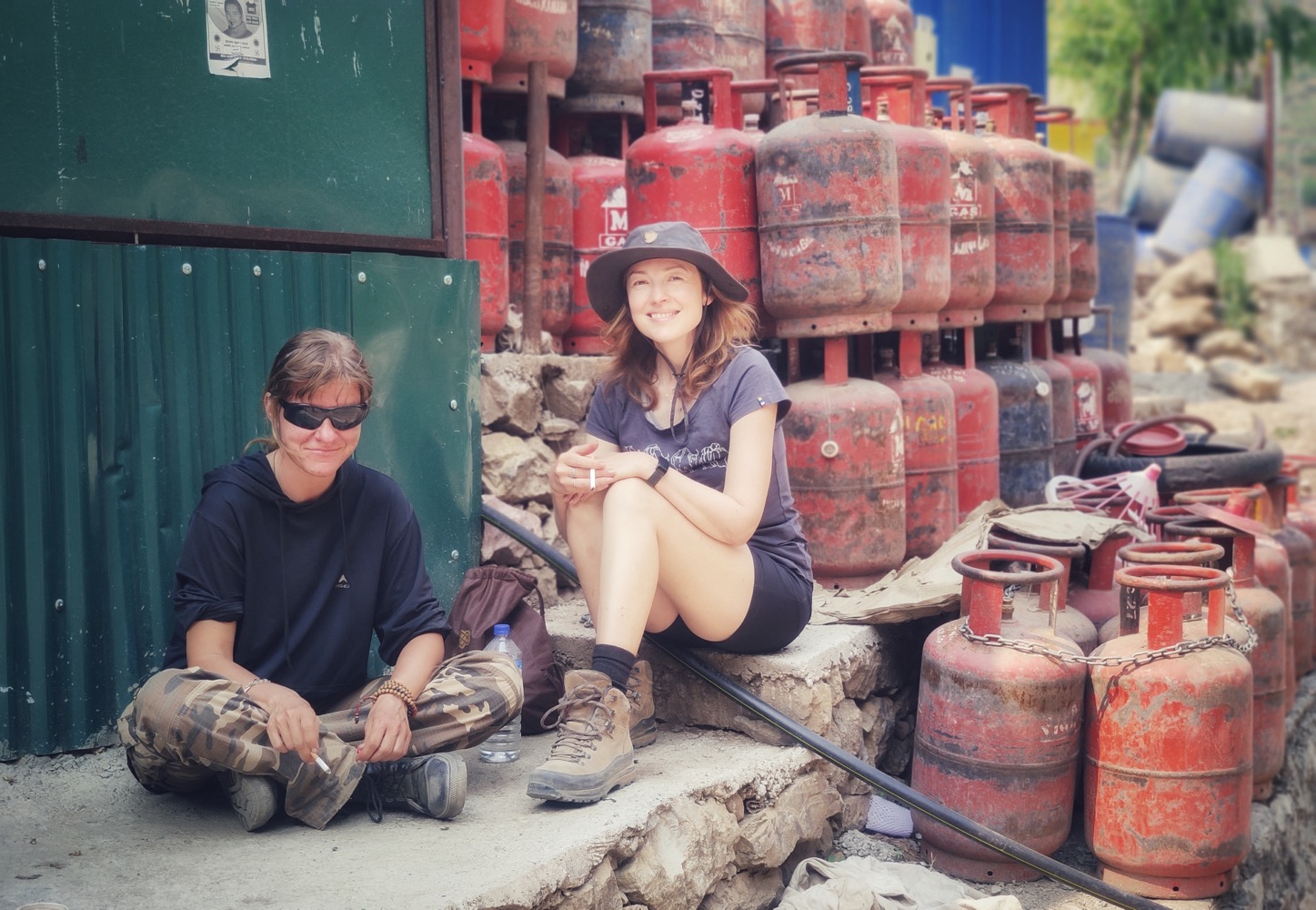 Мы кинули вещи на хуторе (у них есть комнаты, но похожие больше на чуланы, поставили просто палатку во дворе) и пошли чуть прогуляться и тут же встретили Ксюху. Она хотела пойти с нами изначально, но не успела прилететь, мы ушли без нее, а она просто очень быстро доехала до Майкота и там сидела нас ждала. Вот пришла на источники помыться.
