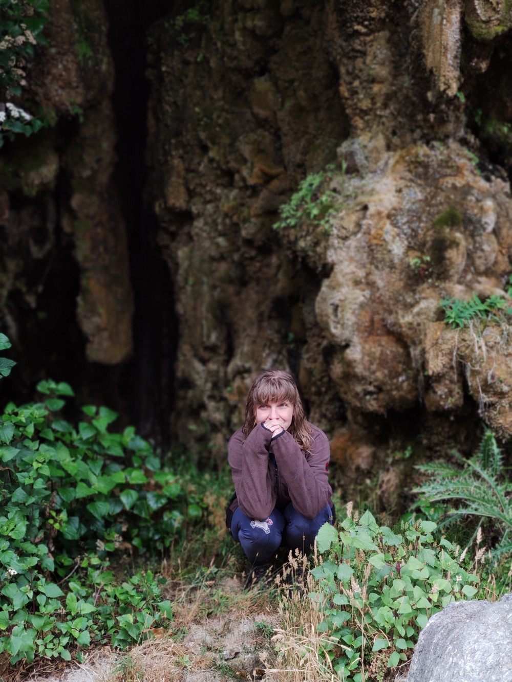 Последняя часть пути к горячим источникам сильно вниз. Если большую часть тропы Гриша накануне уверенно просмотрел на гугл-мапс, то эту часть среди кустов и камней естессно видно не было. Дошли только на моем убеждении, что точка на картах стоит правильно (я была там в прошлом году, но ходила от Мури)