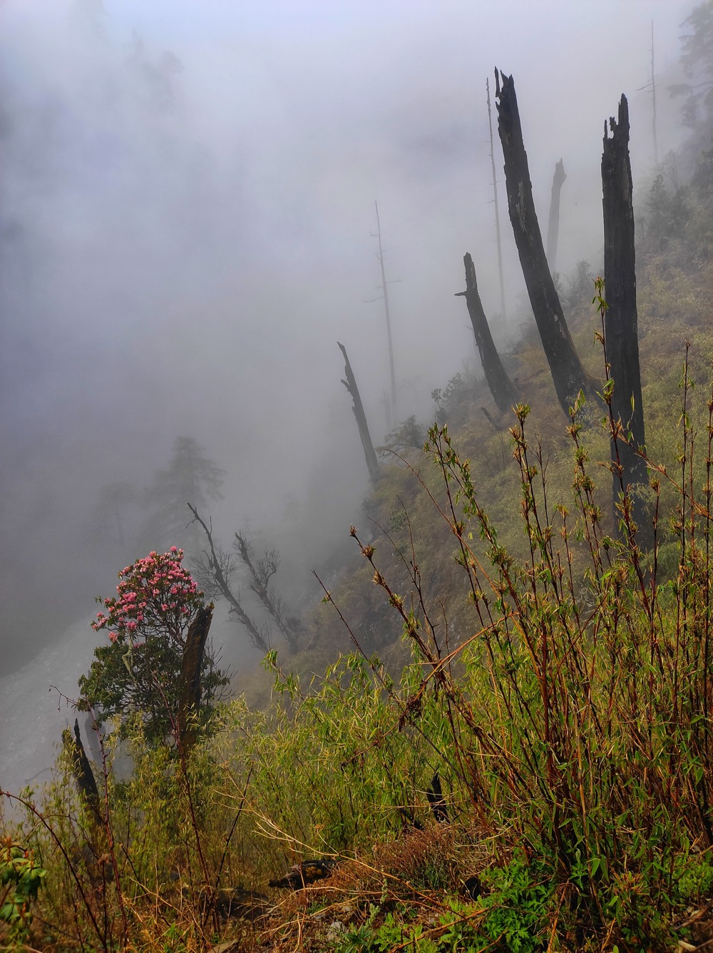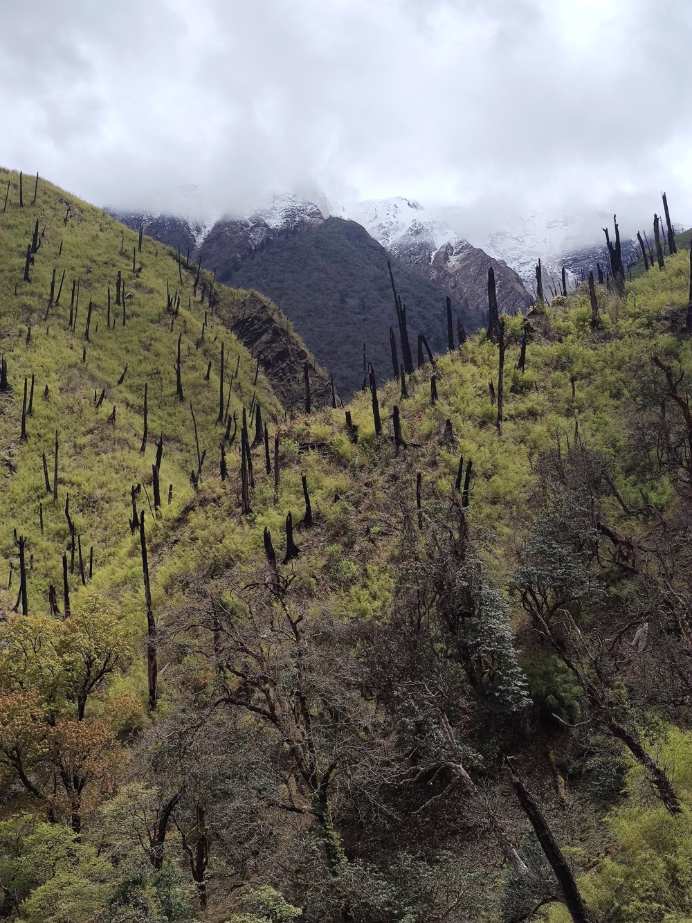 Ладна, разум в этот раз победил, пошли на Гурджагат, чтобы чуть немного придерживаться стандартного трека. Дорога долго идёт через горелый лес: