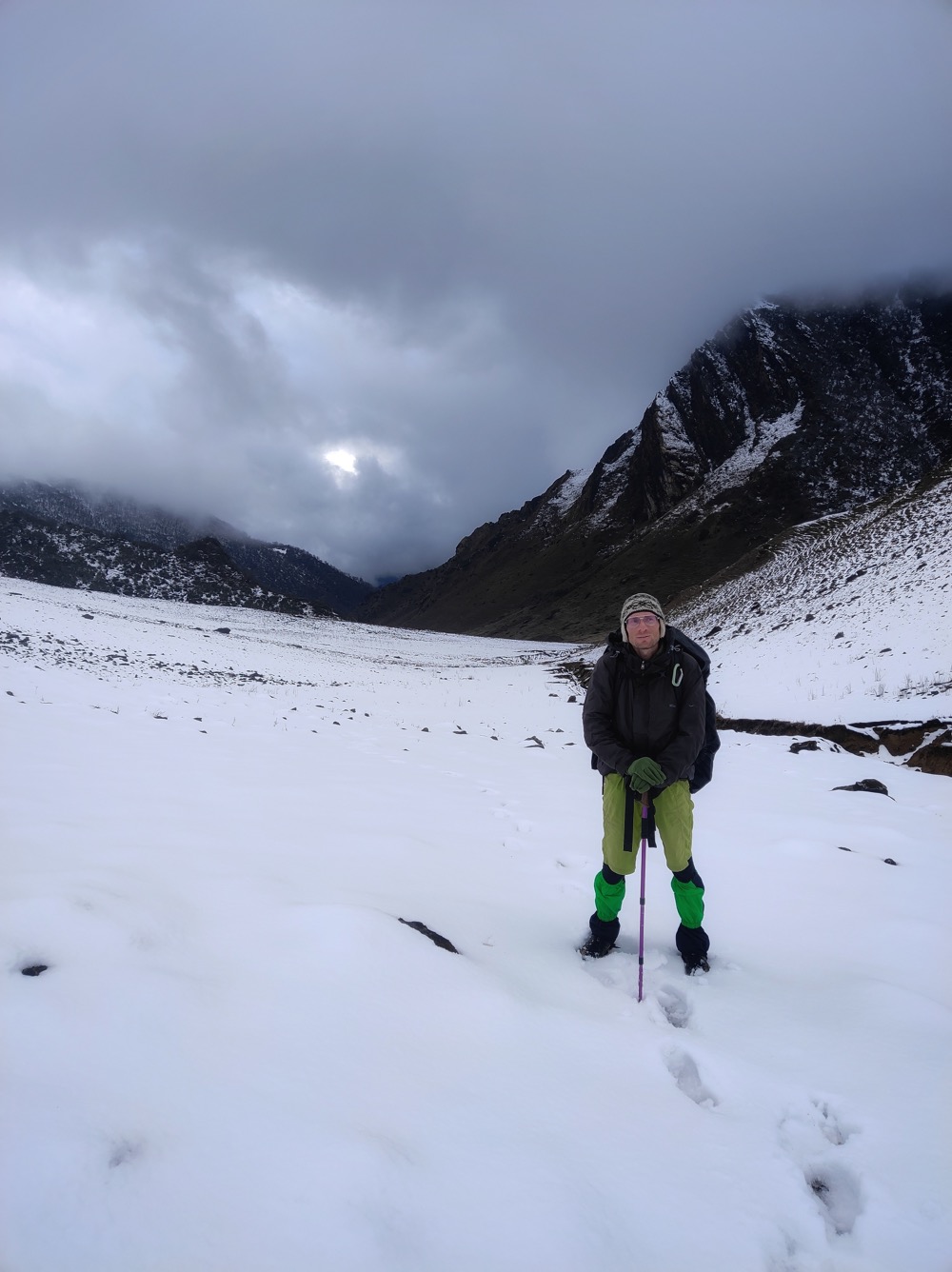 перешел тоже перевал и пришел на час может раньше нас. Затемпературил.