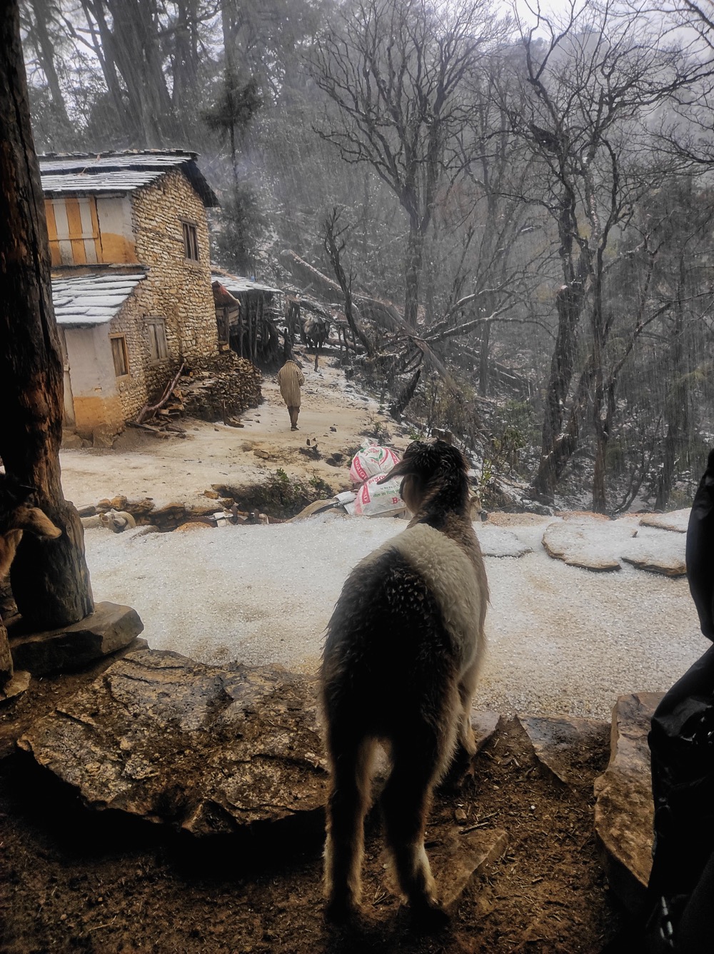 Встали на ночь с палаткой где-то после деревни. На следующий день, до Гурджакани надо было пройти перевал. Ни разу ни Ла, просто Деурали (3200м). Но внезапно, в мае на этой высоте пошел град. Большой, крупный, затяжной. Прифигели и мы и козы, вместе забились в какую-то сараюшку: